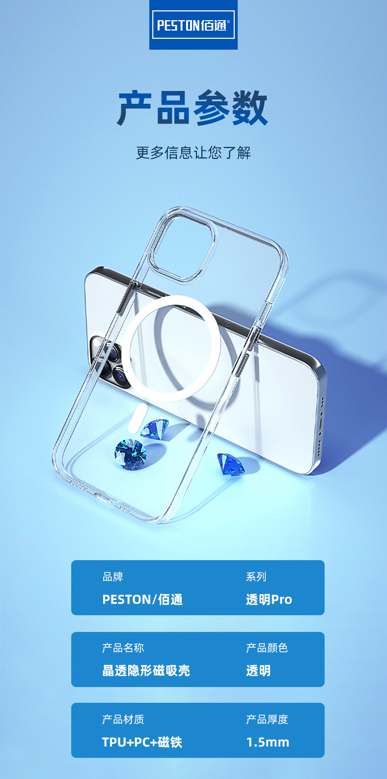 佰通适用iPhone14151316ProMax磁吸透明薄防摔全包镜头手机套