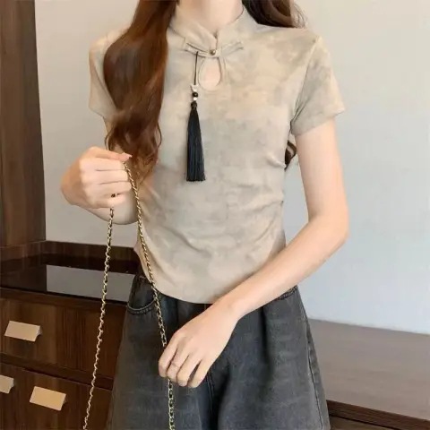 新中式盘扣短袖t恤女2025新款夏装掐腰设计感洋气超显身材的上衣
