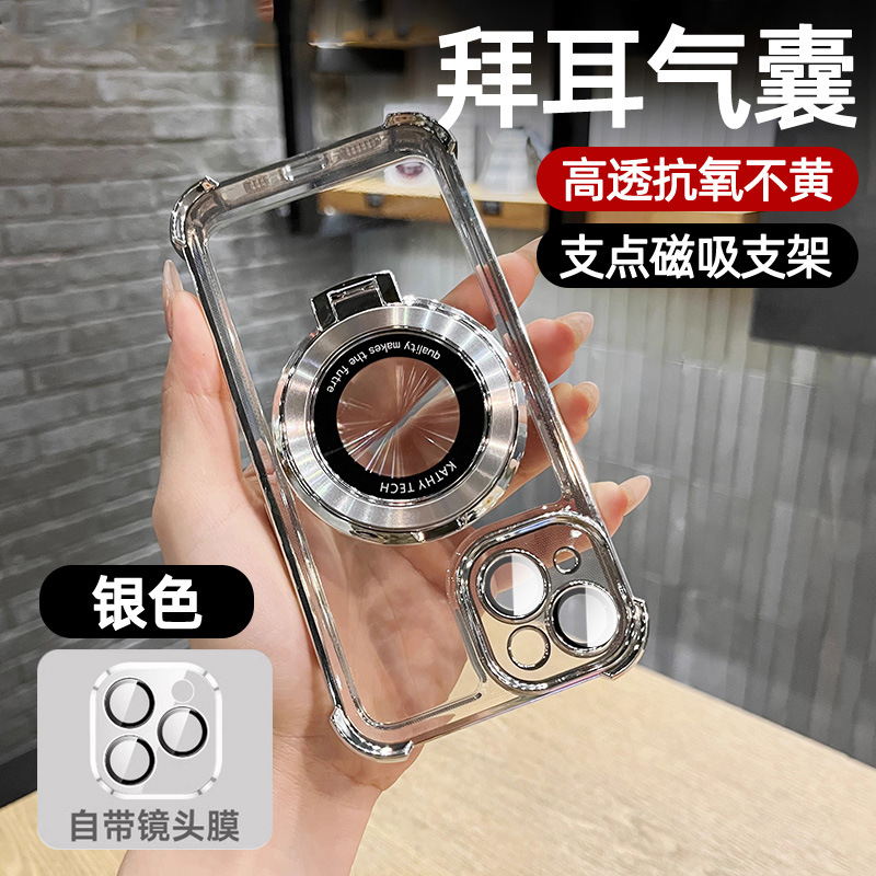 - 【银色】tpu气囊全包带镜头膜+磁吸支架