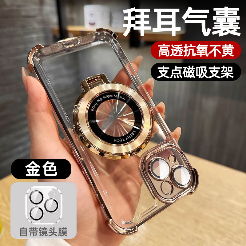 - 【金色】tpu气囊全包带镜头膜+磁吸支架