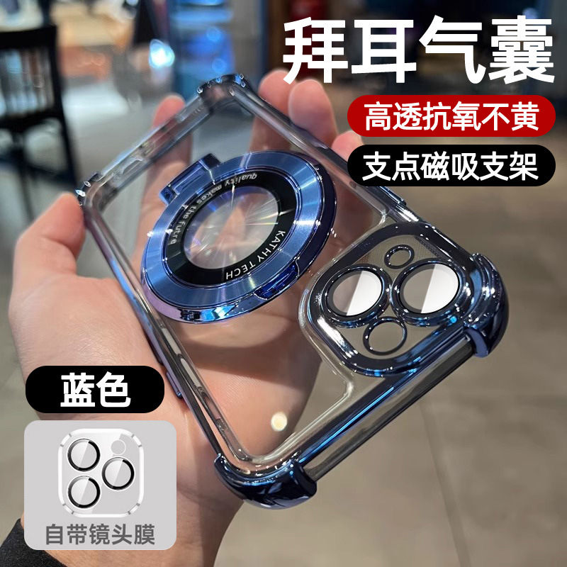 - 【蓝色】tpu气囊全包带镜头膜+磁吸支架