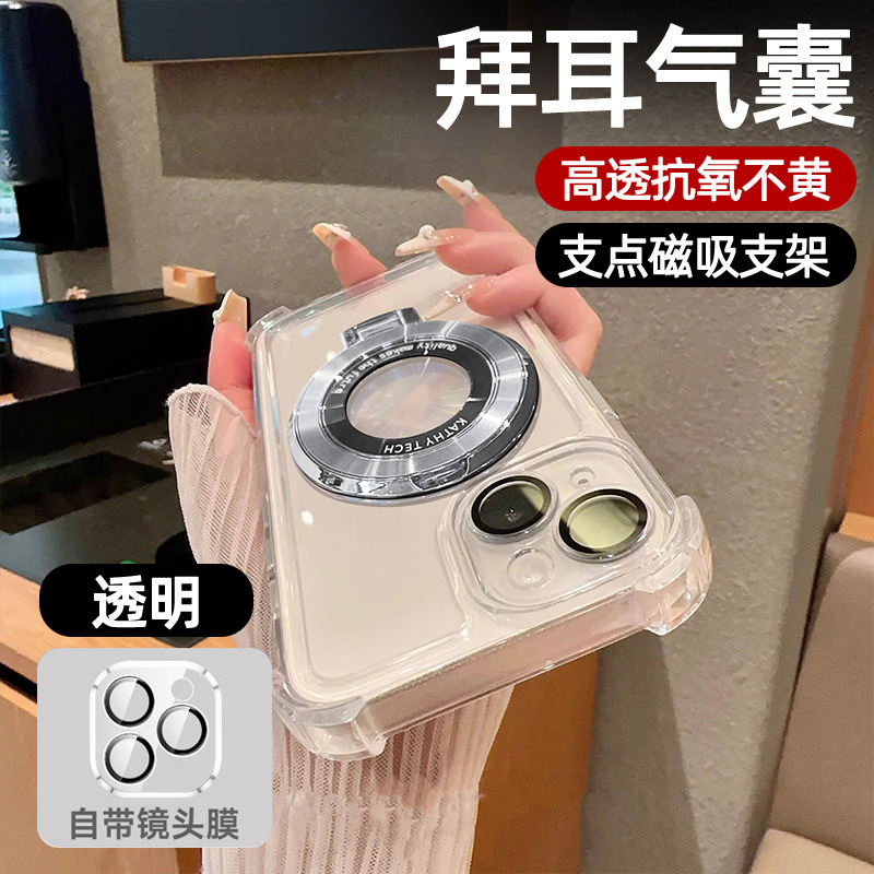 - 【全透明】tpu气囊全包带镜头膜+磁吸支架