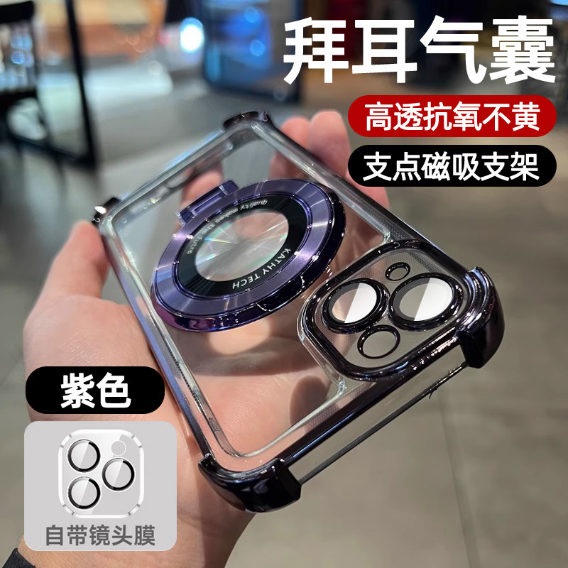 - 【紫色】tpu气囊全包带镜头膜+磁吸支架