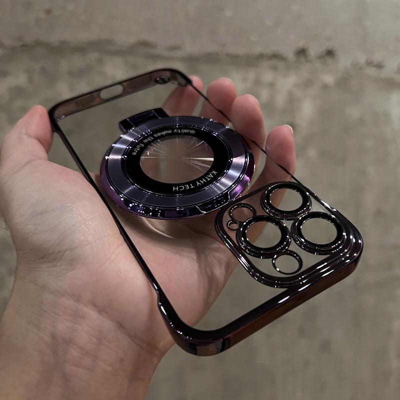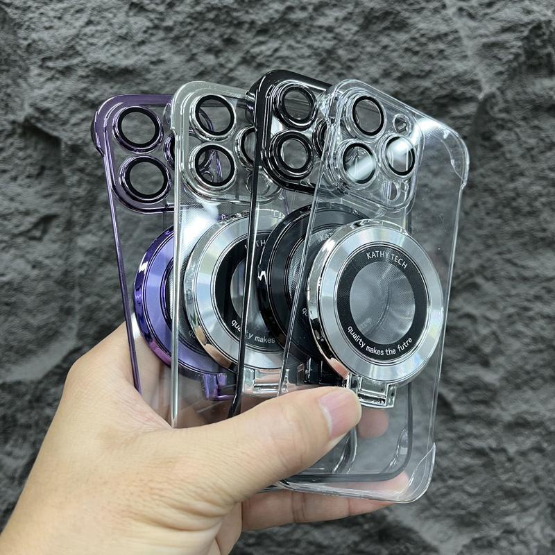 适用苹果iPhone16promax手机壳保护15pro透明磁吸支架16pm高级感