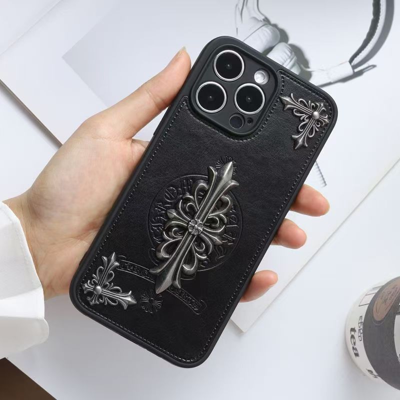 潮牌金属适用iphone15promax手机壳苹果16pro立体十字架个性13plu