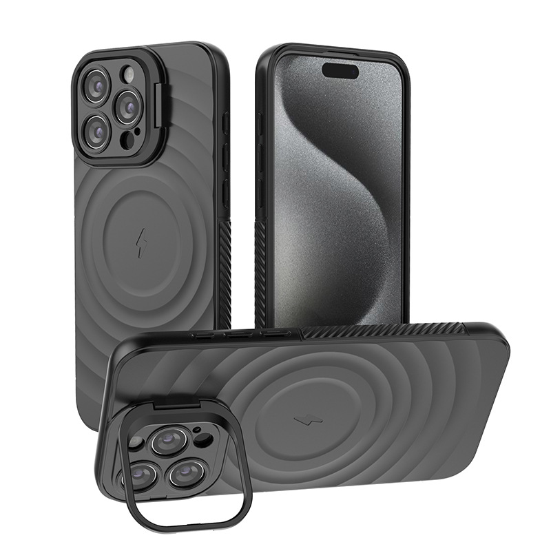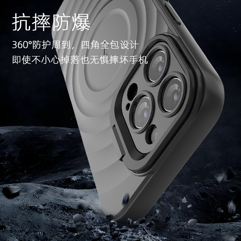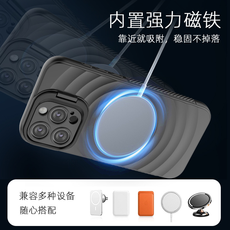 跨境适用iPhone系列手机壳镜头全包隐形支架苹果17波纹防摔手机壳