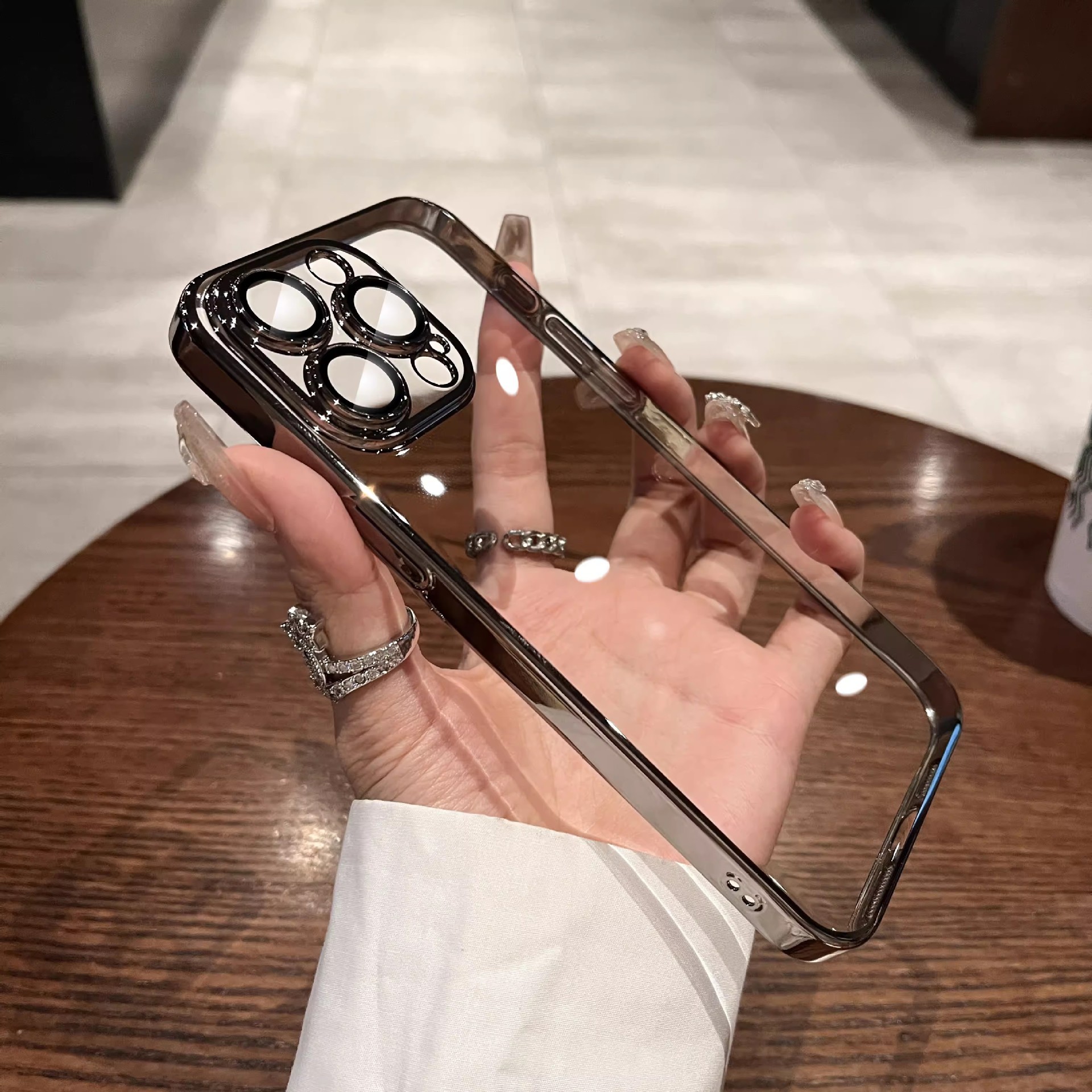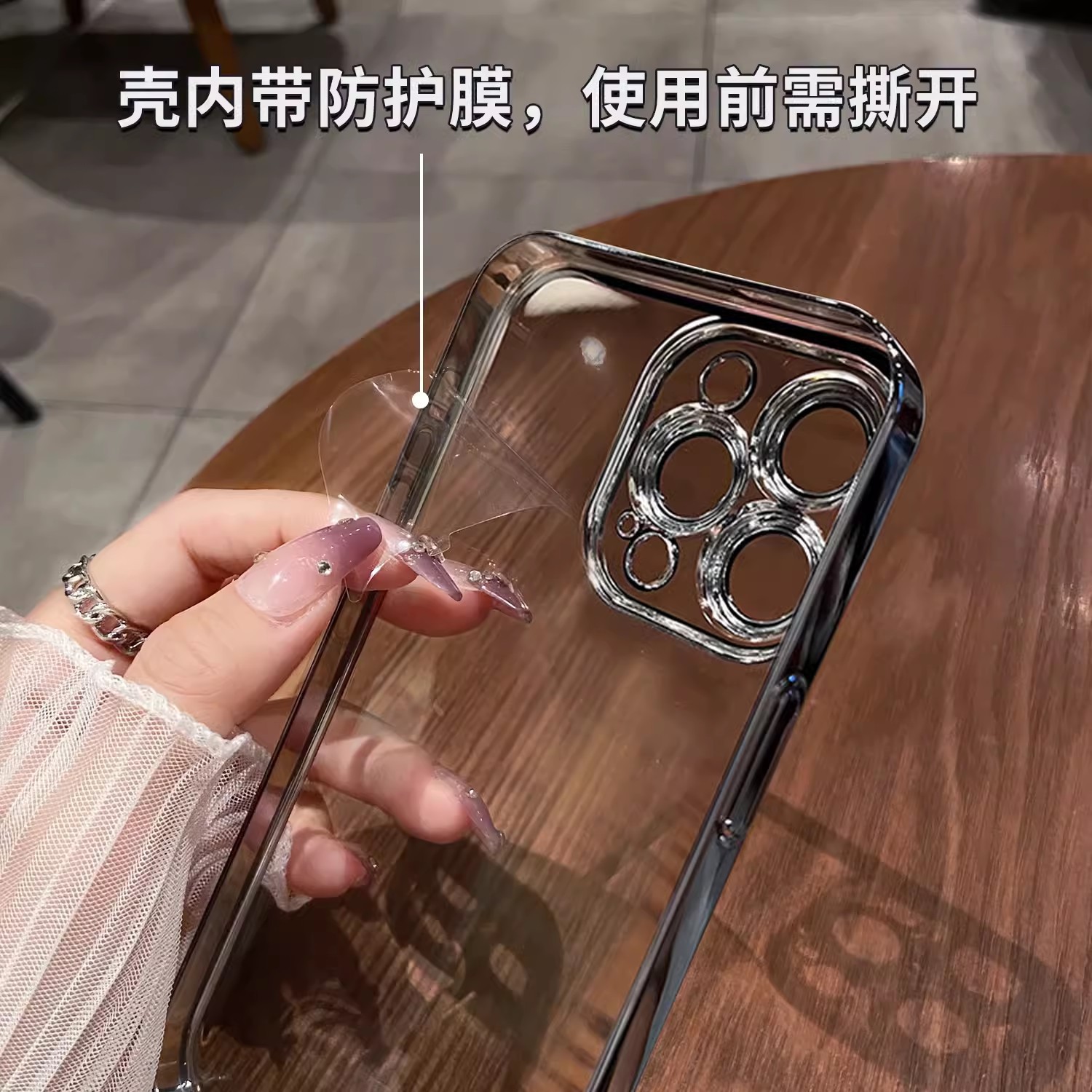 适用iPhone16pro手机壳PC电镀透明苹果15Pro超薄全包镜头膜保护套