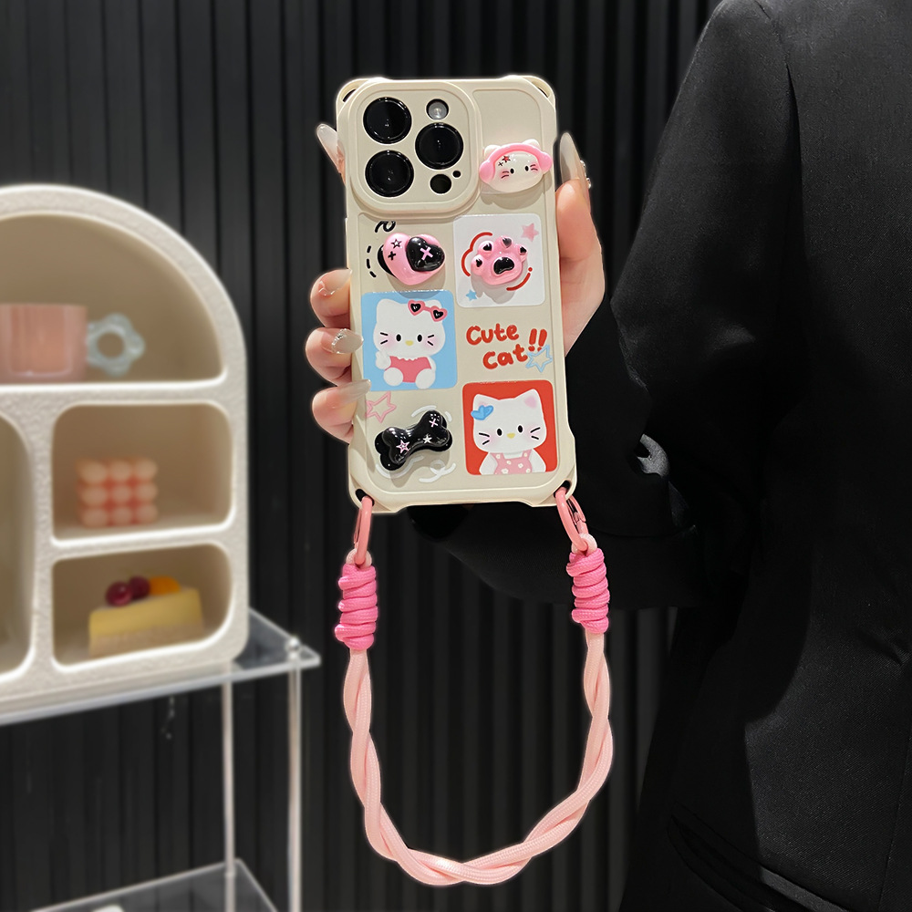 - 方格小猫+长挂绳+短挂绳【挂绳四角防摔壳粉】