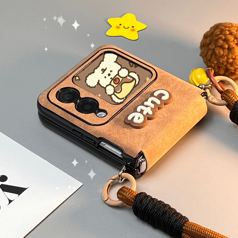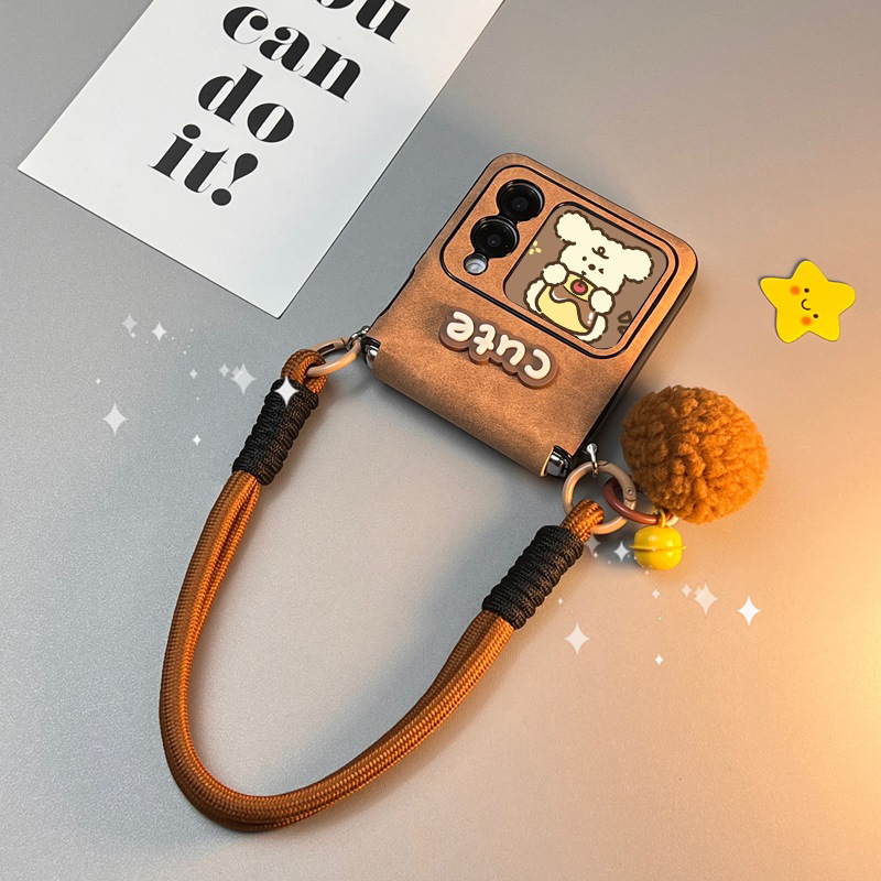 【铰链全包】棕色翻毛皮壳+铃铛挂件+黑棕编织绳