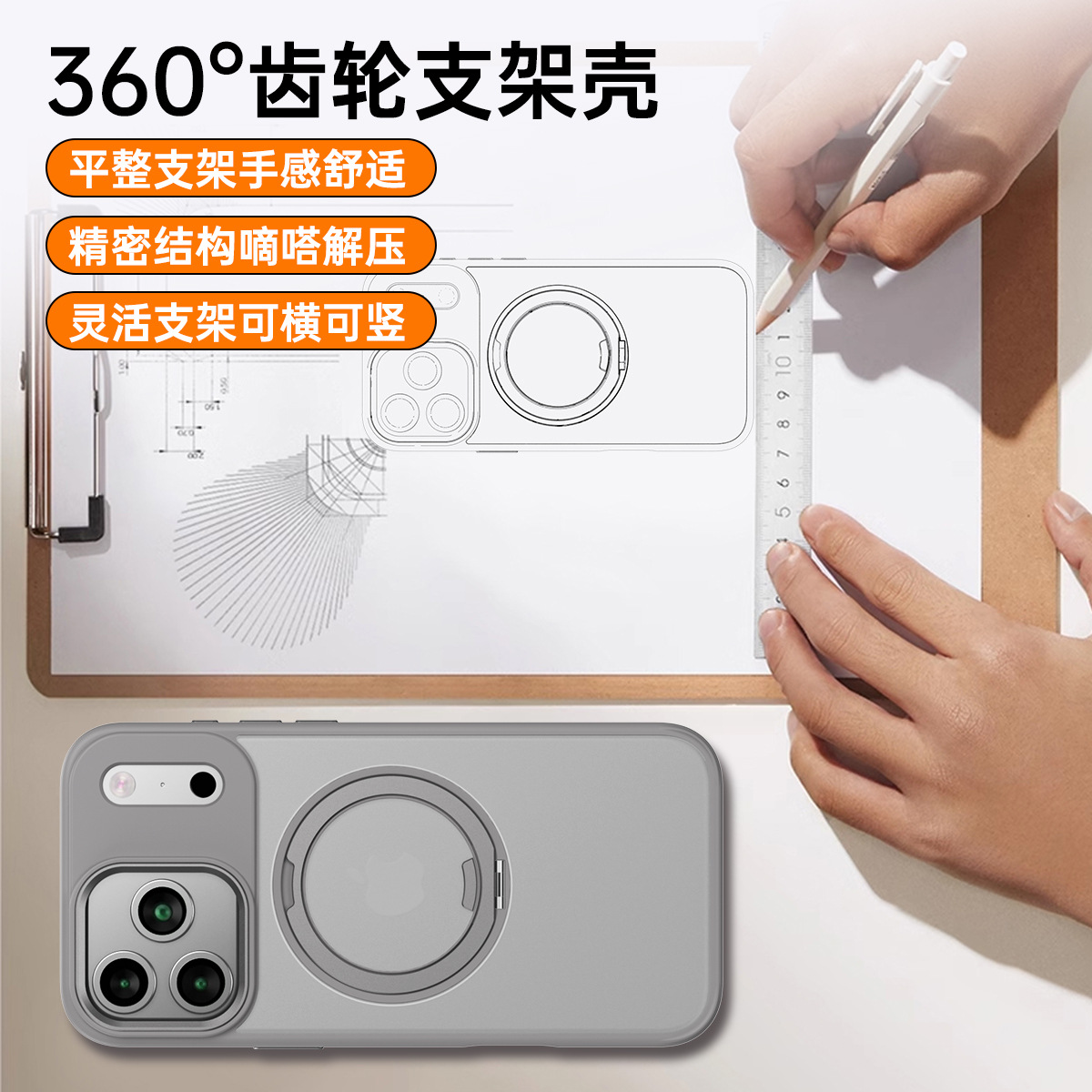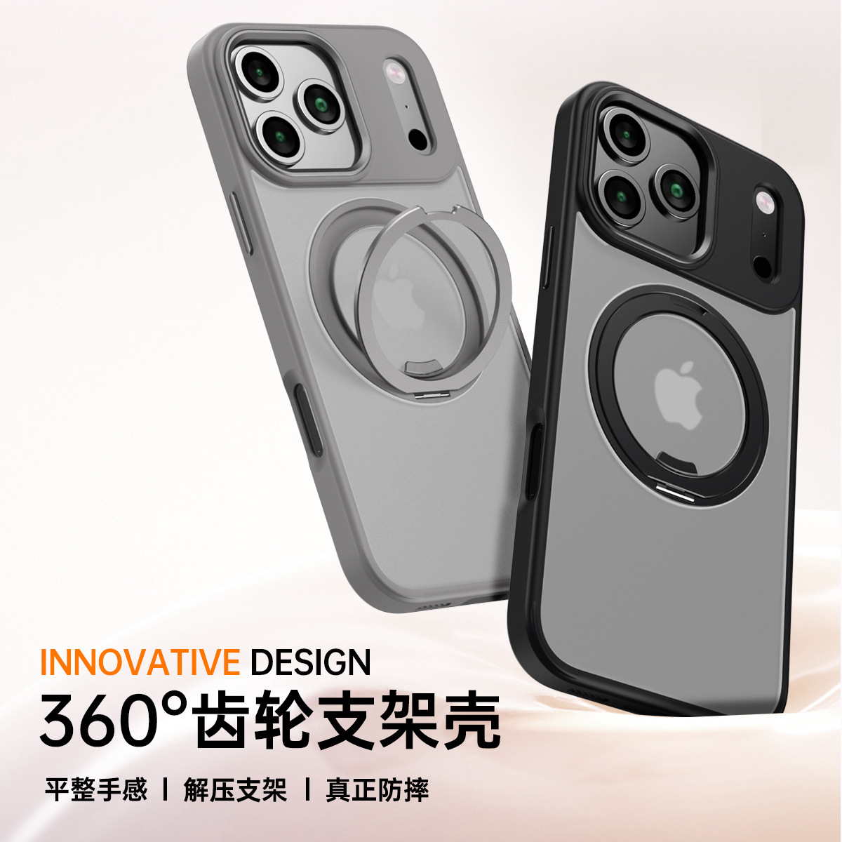 适用苹果17promax磁吸齿轮支架手机壳iPhone16air支点肤感手机套
