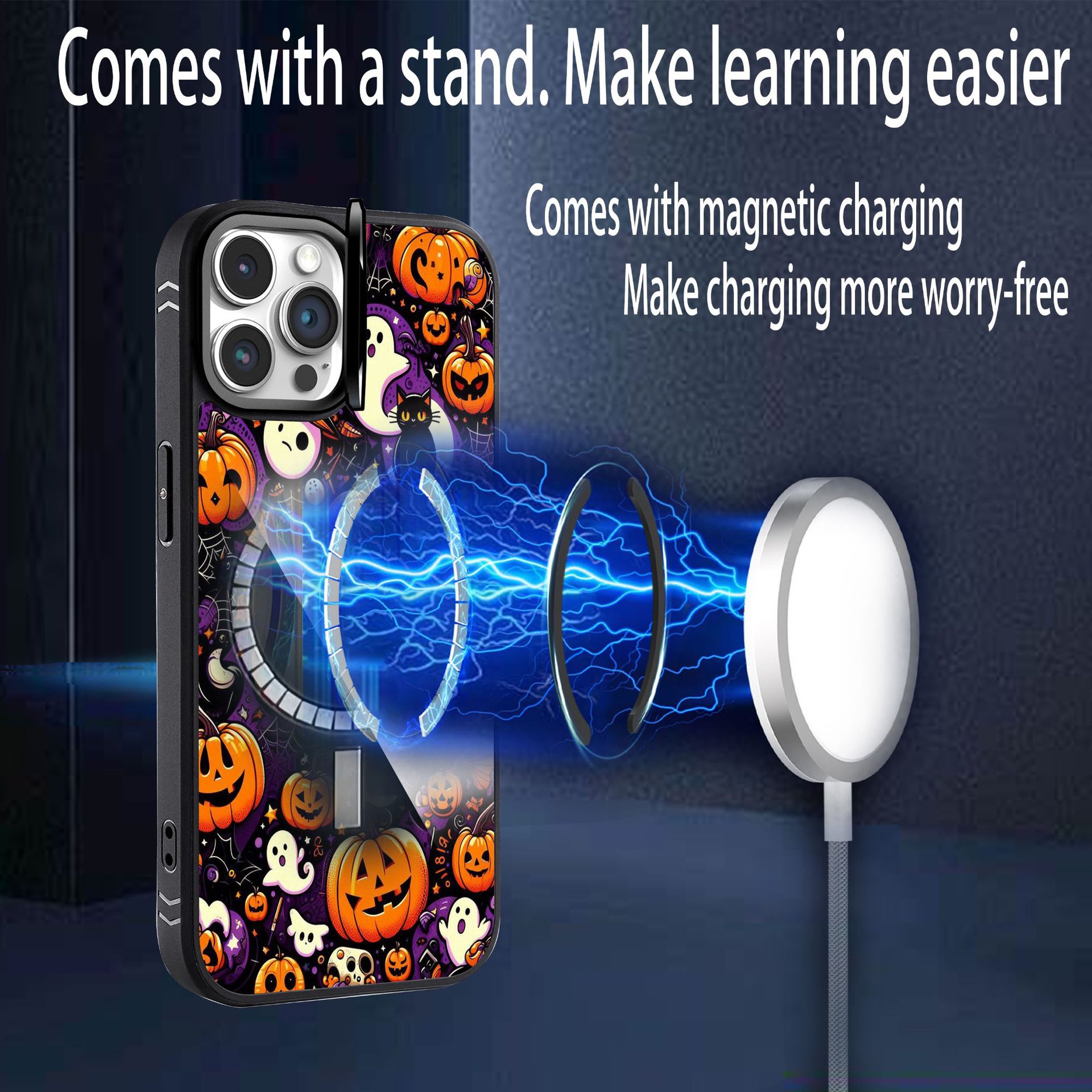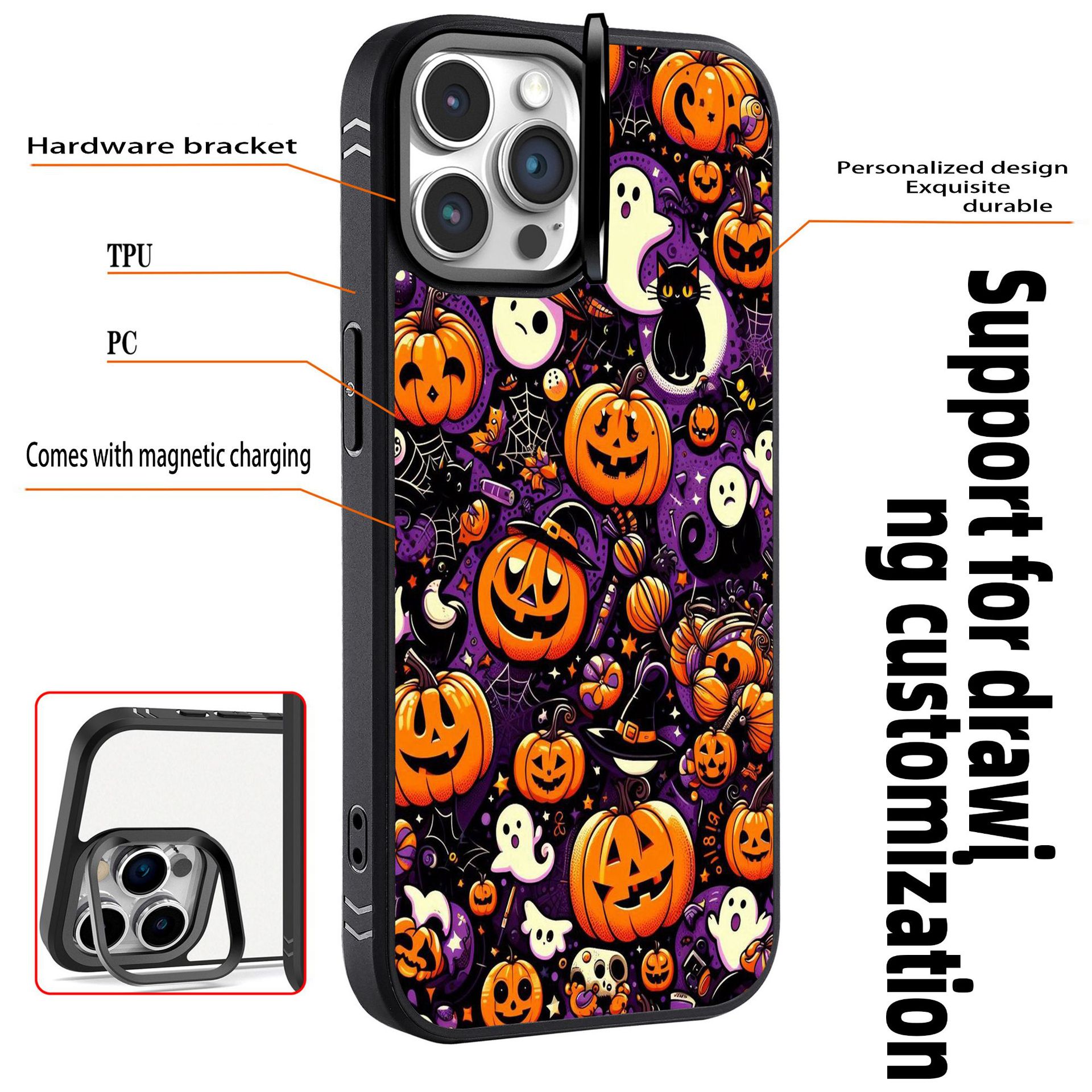 适用苹果16系列手机壳万圣节骷髅头南瓜灯幽灵磁吸支架手机保护套