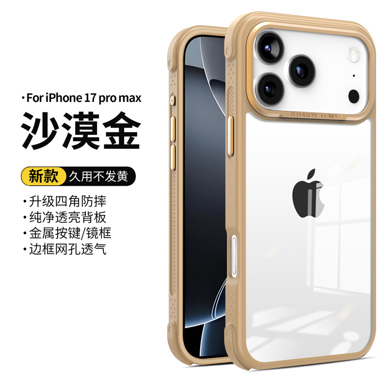 适用于iPhone17pro手机壳纯色金属按键镜头框透明手机壳苹果17Air