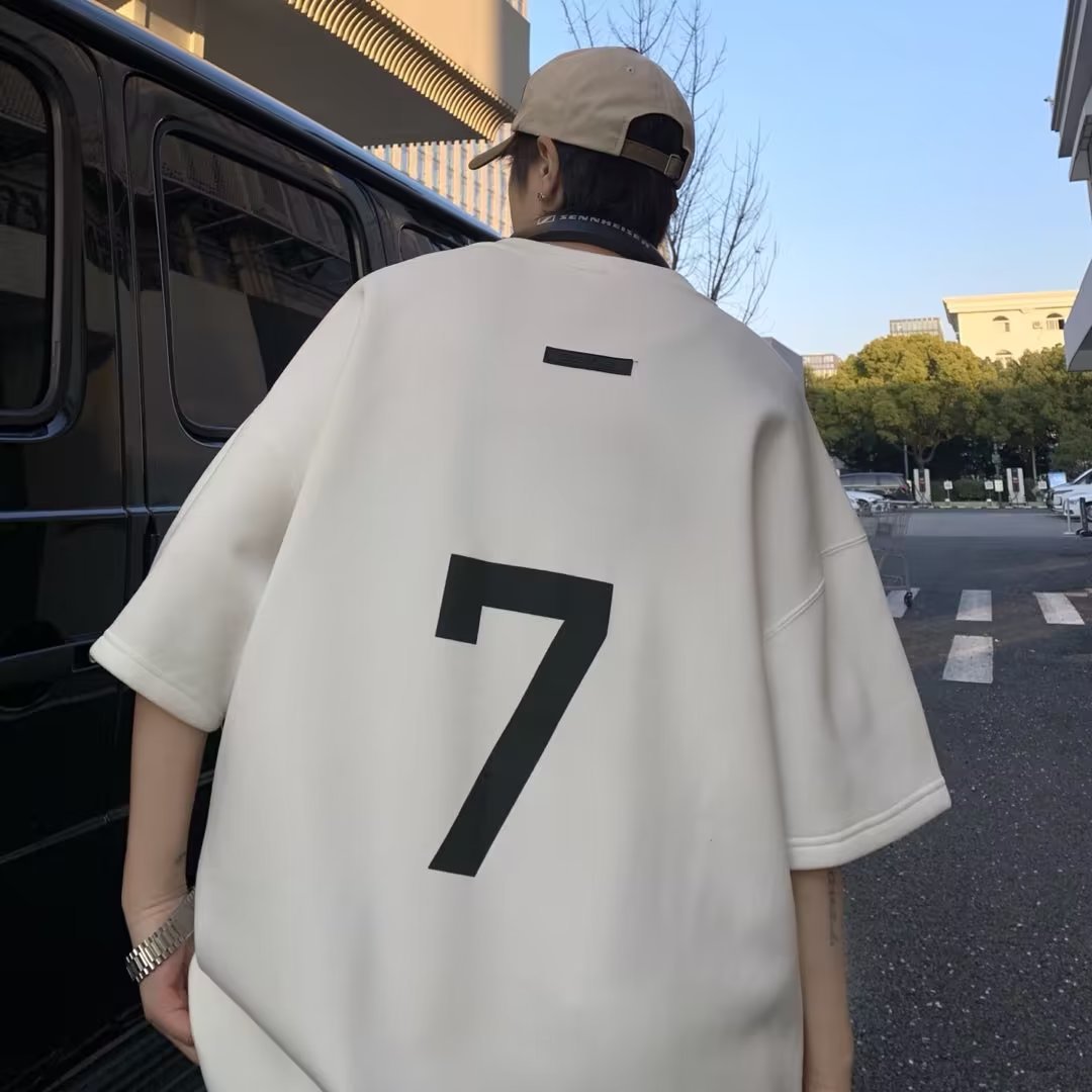 国潮休闲短袖男美式vibe小众高街数字T恤oversize小领口半袖夏季