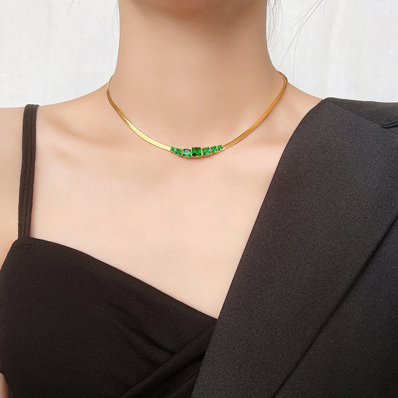祖母绿锆石项链女轻奢小众设计感镶钻短款颈链复古港风气质锁骨链