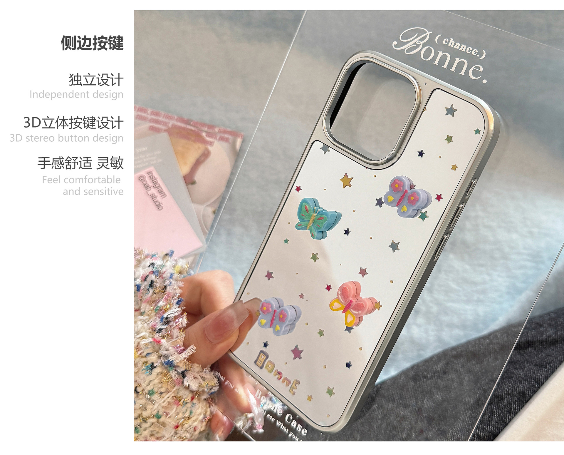立体蝴蝶适用16苹果15promax手机壳iphone14电镀镜面13甜美15代发