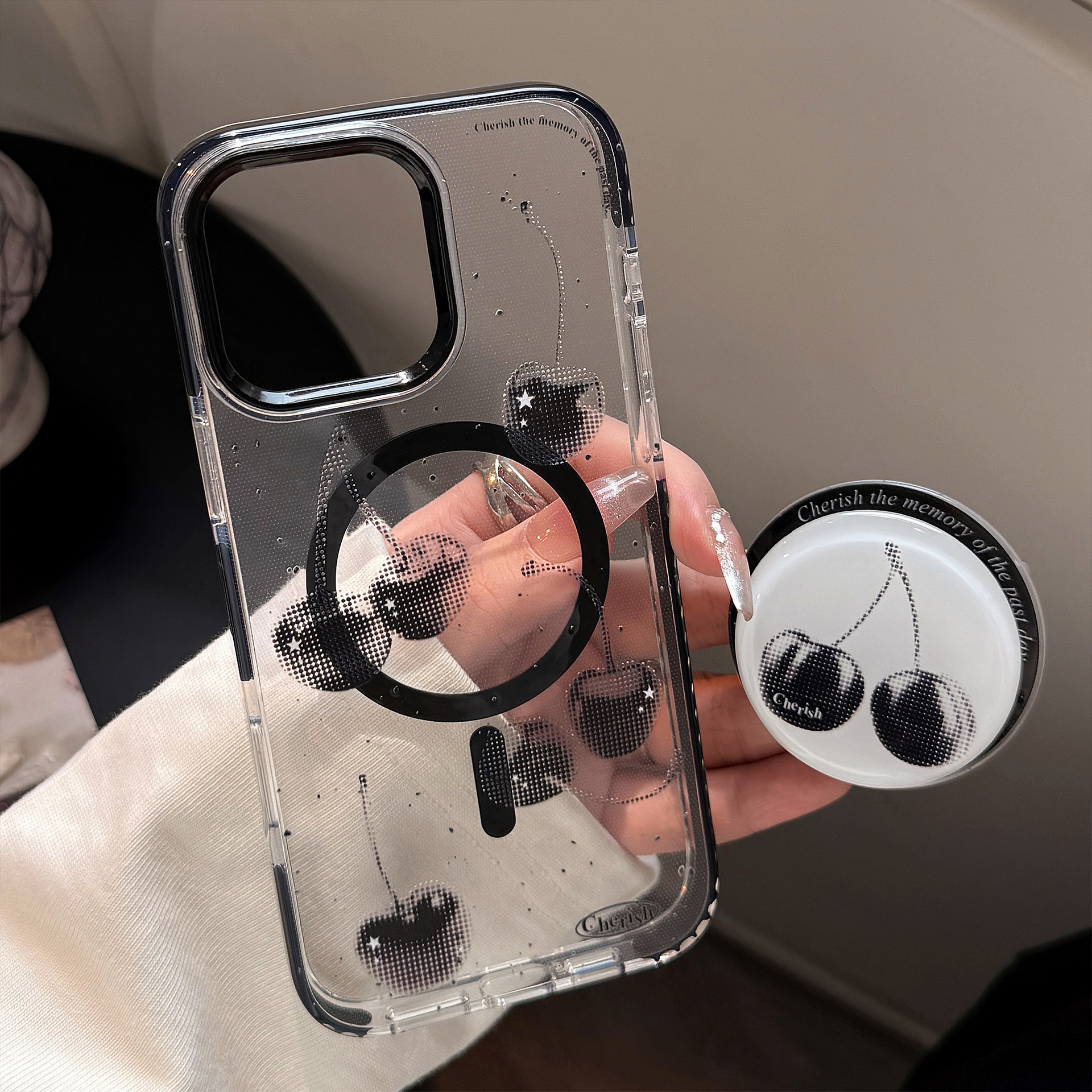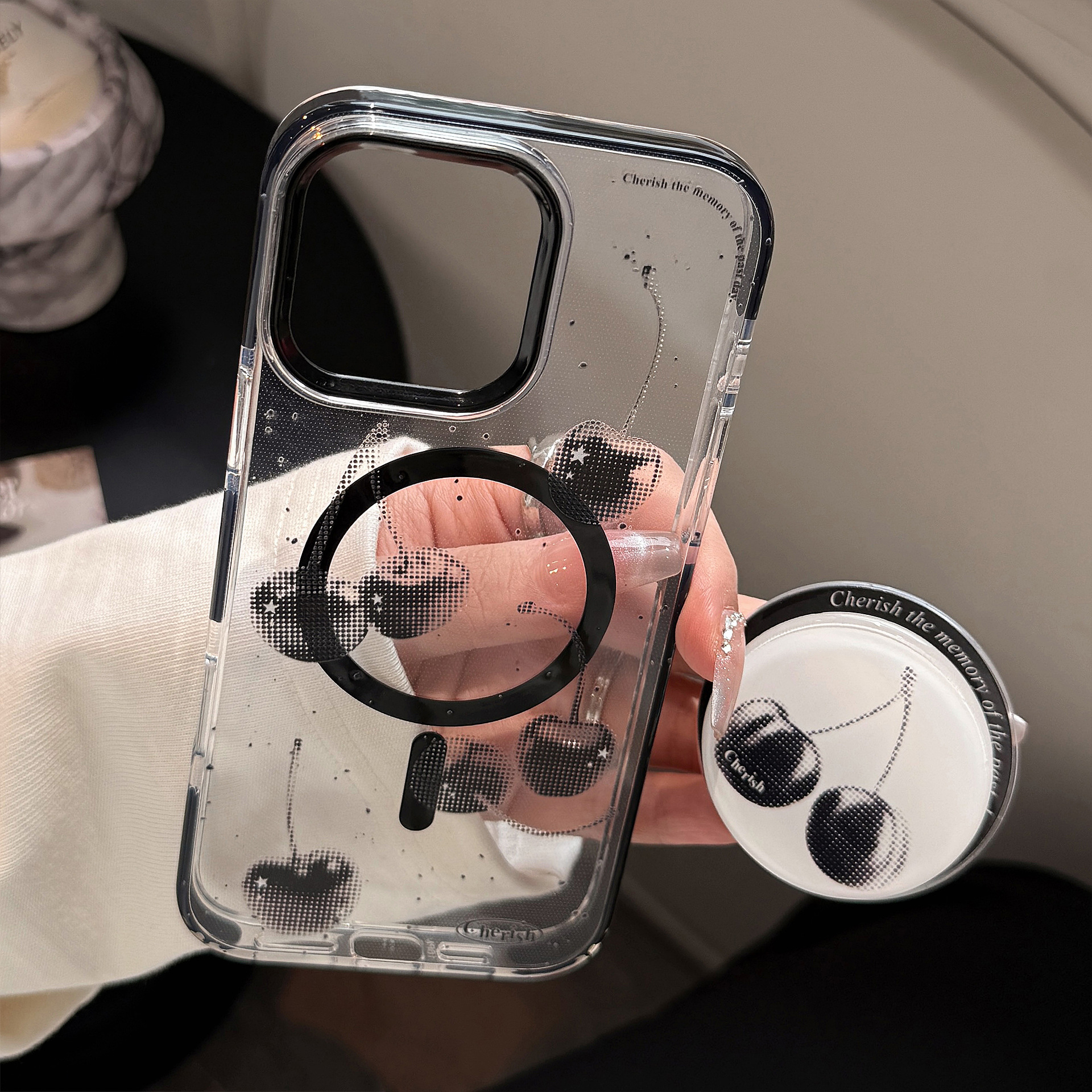 磁吸支架适用苹果16promax手机壳iPhone15高级感14透明13黑色樱桃