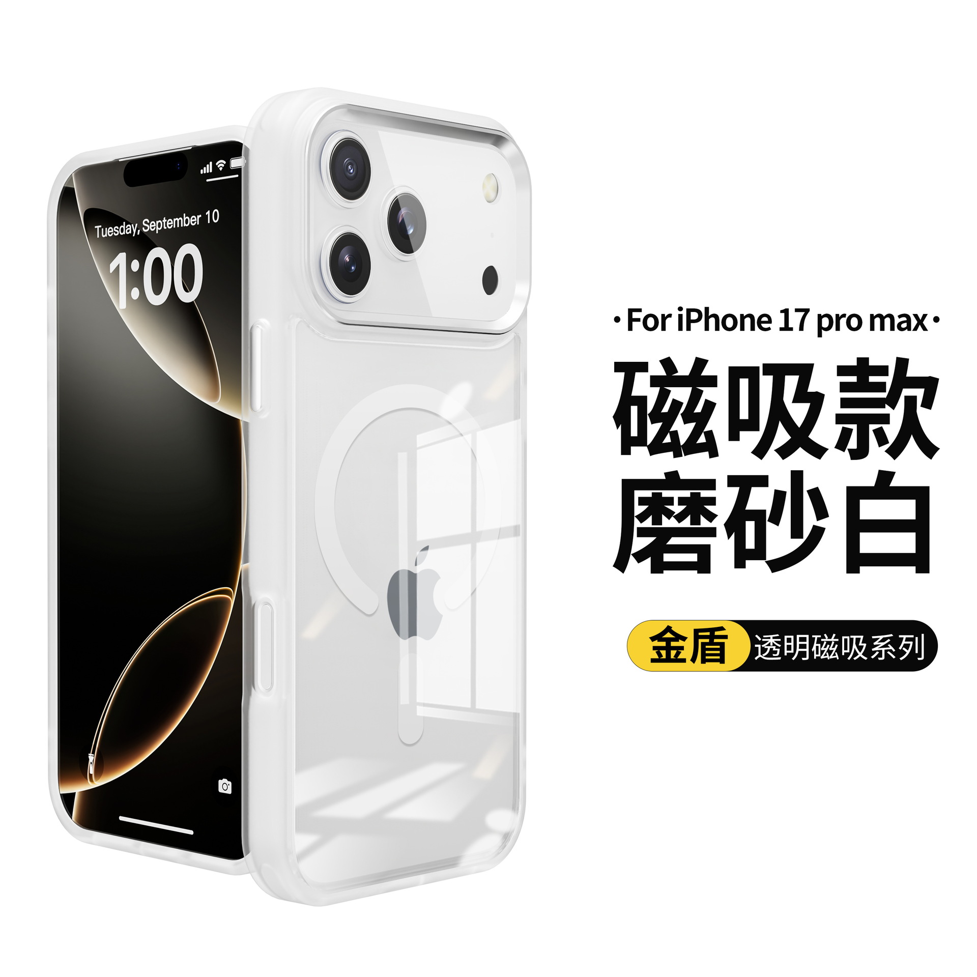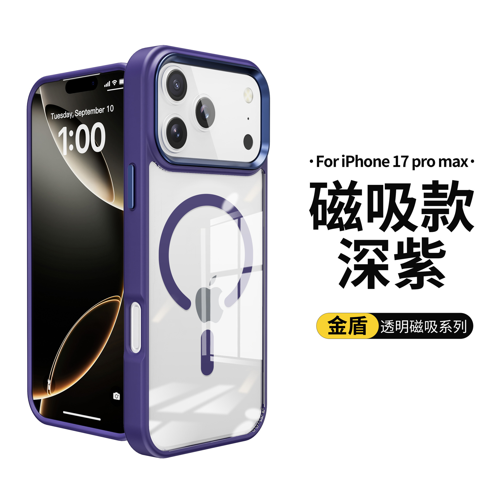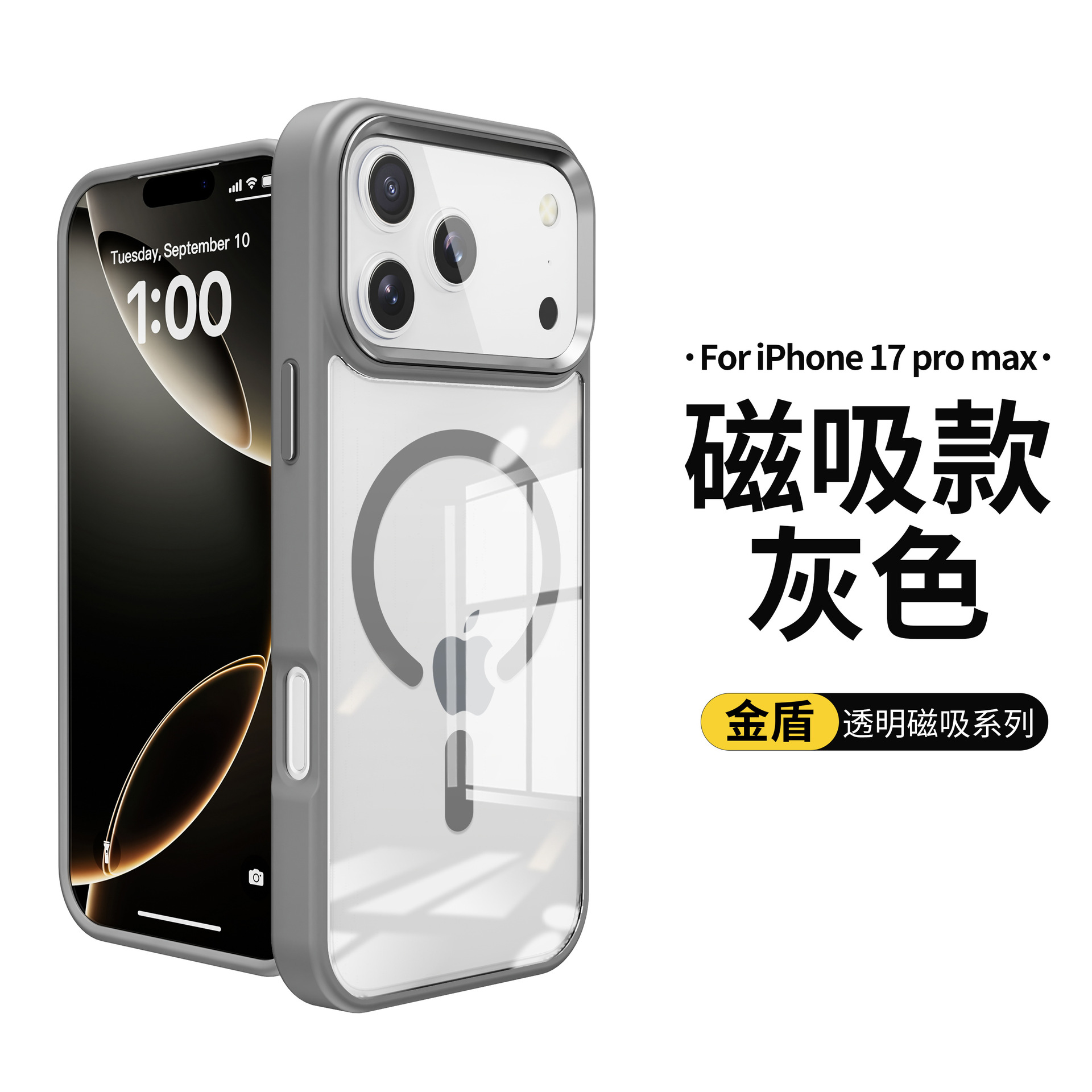 适用于iphone17磁吸手机壳金属按键苹果17promax透明亚克力防摔壳