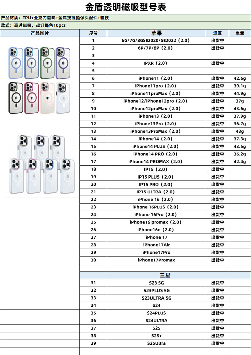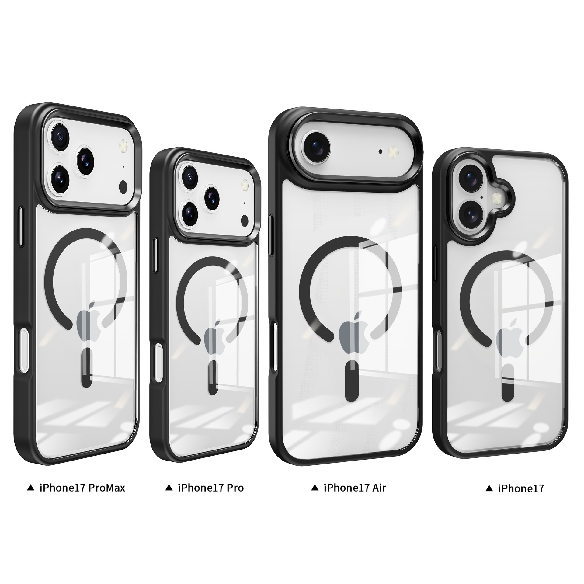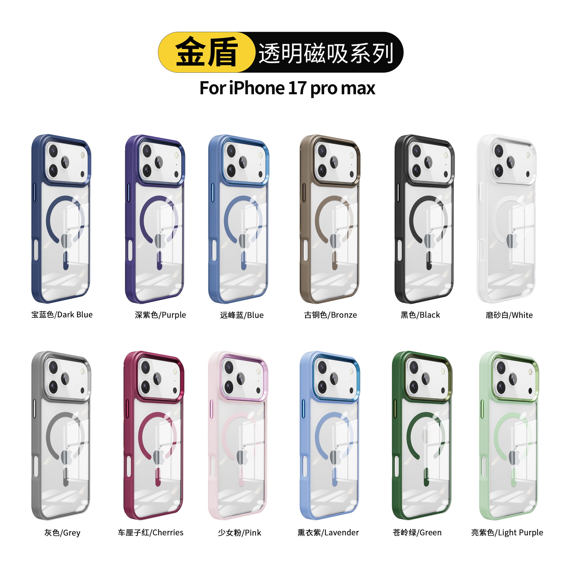 适用于iphone17磁吸手机壳金属按键苹果17promax透明亚克力防摔壳