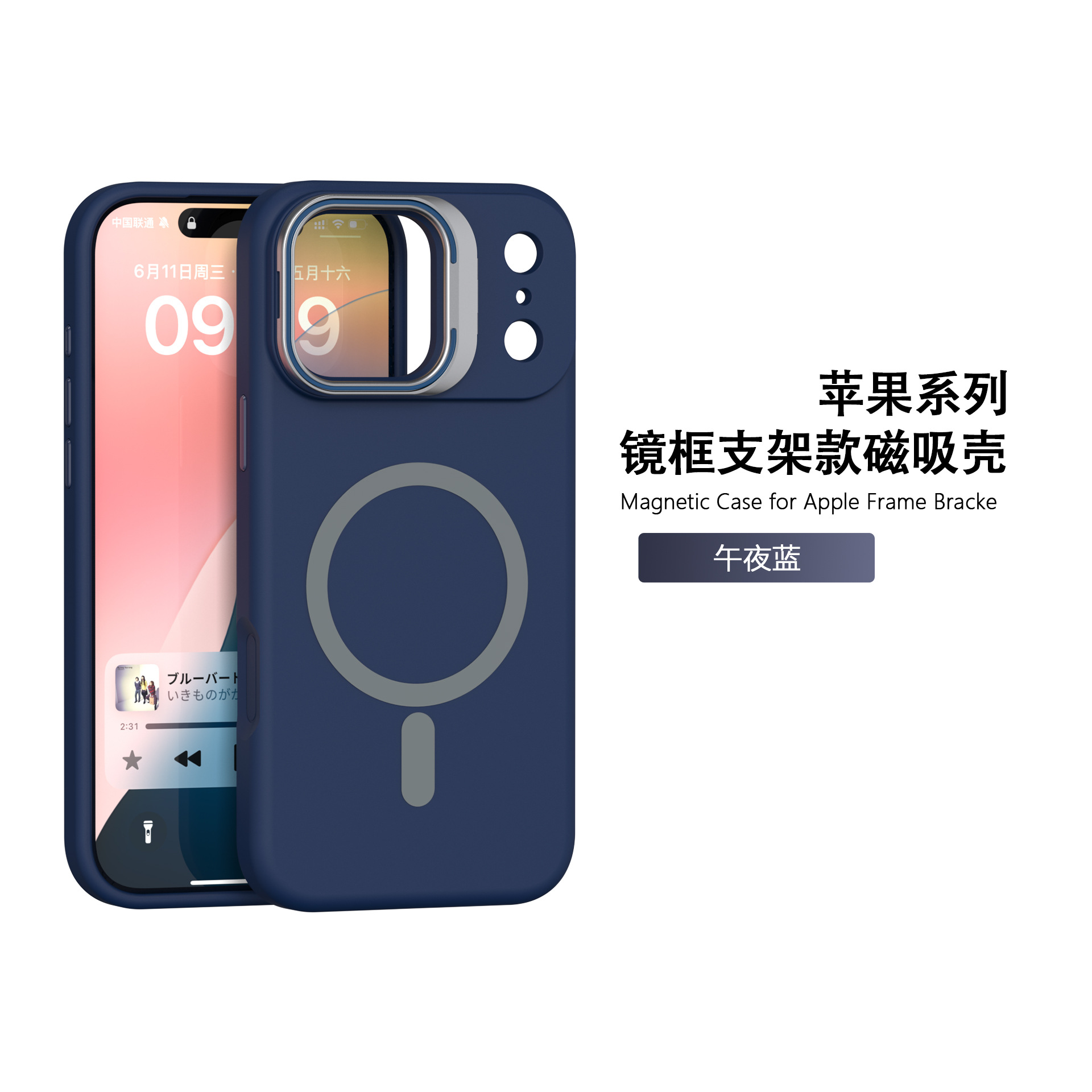 适用苹果17液态硅胶镜框支架磁吸手机壳iphone17promax防摔保护套