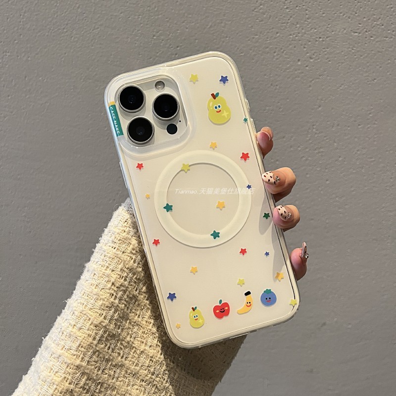 idm大孔满屏闪粉碎花卡通梨适用于iPhone16Promax手机壳苹果15