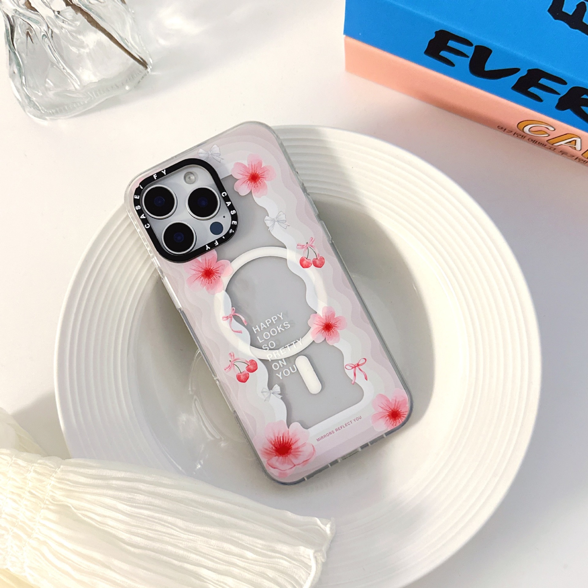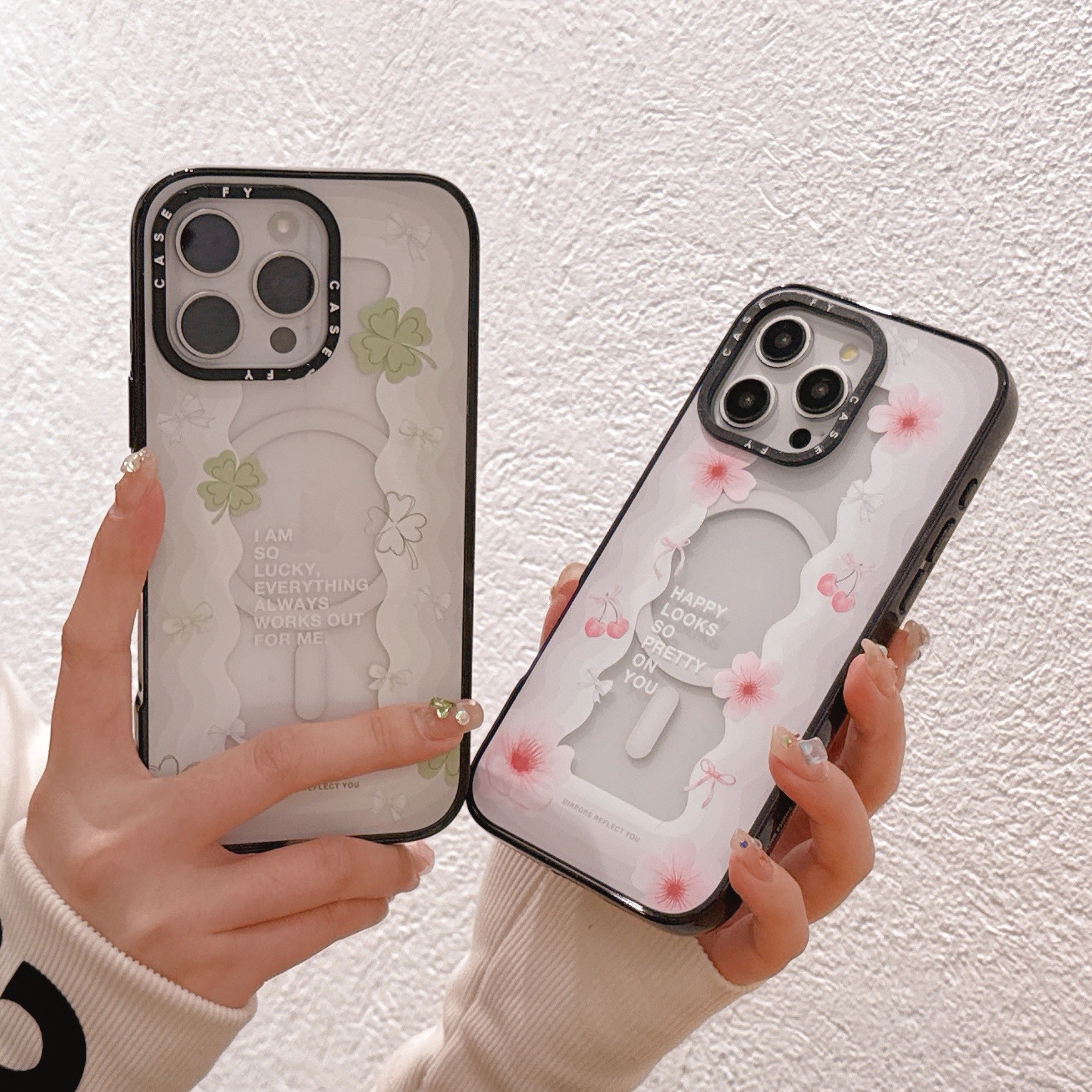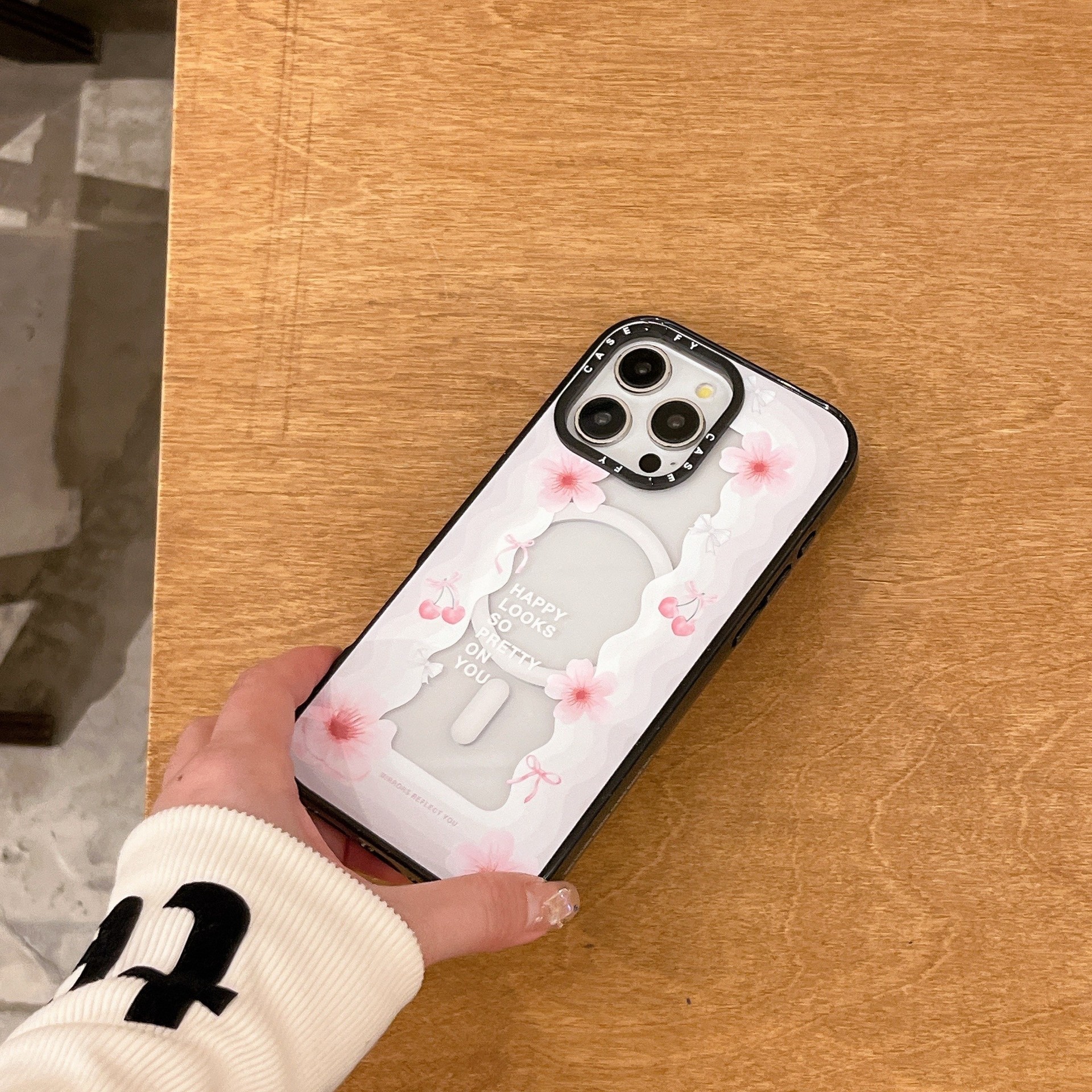 - C壳二合一-黑框透明磁吸-浪漫樱花