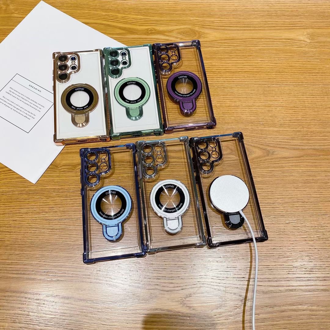 三星S25ultra手机壳适用S24透明四角磁吸支点支架壳NOTE20外贸A34