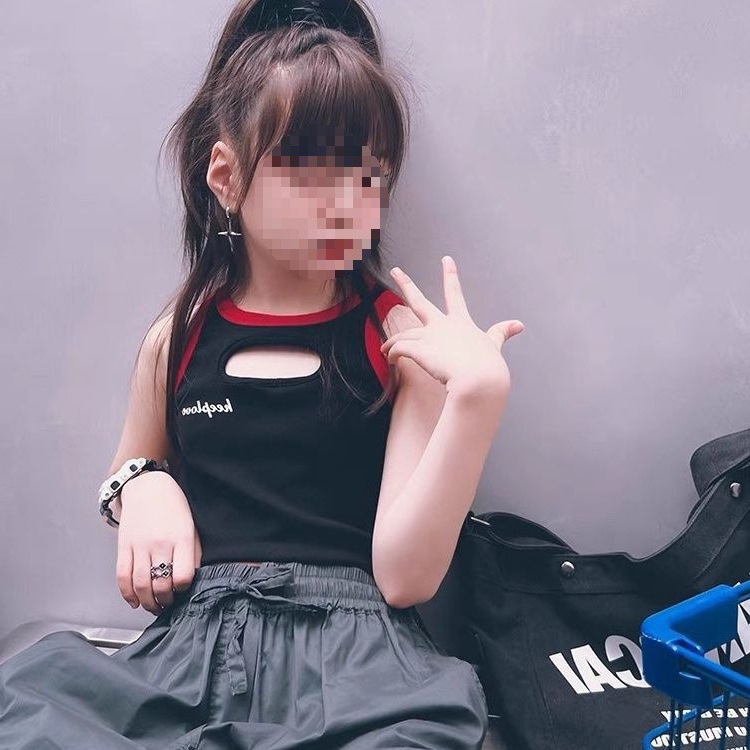 女童夏装背心吊带宝宝洋气儿童个性潮牌港风韩版镂空字母街舞上衣