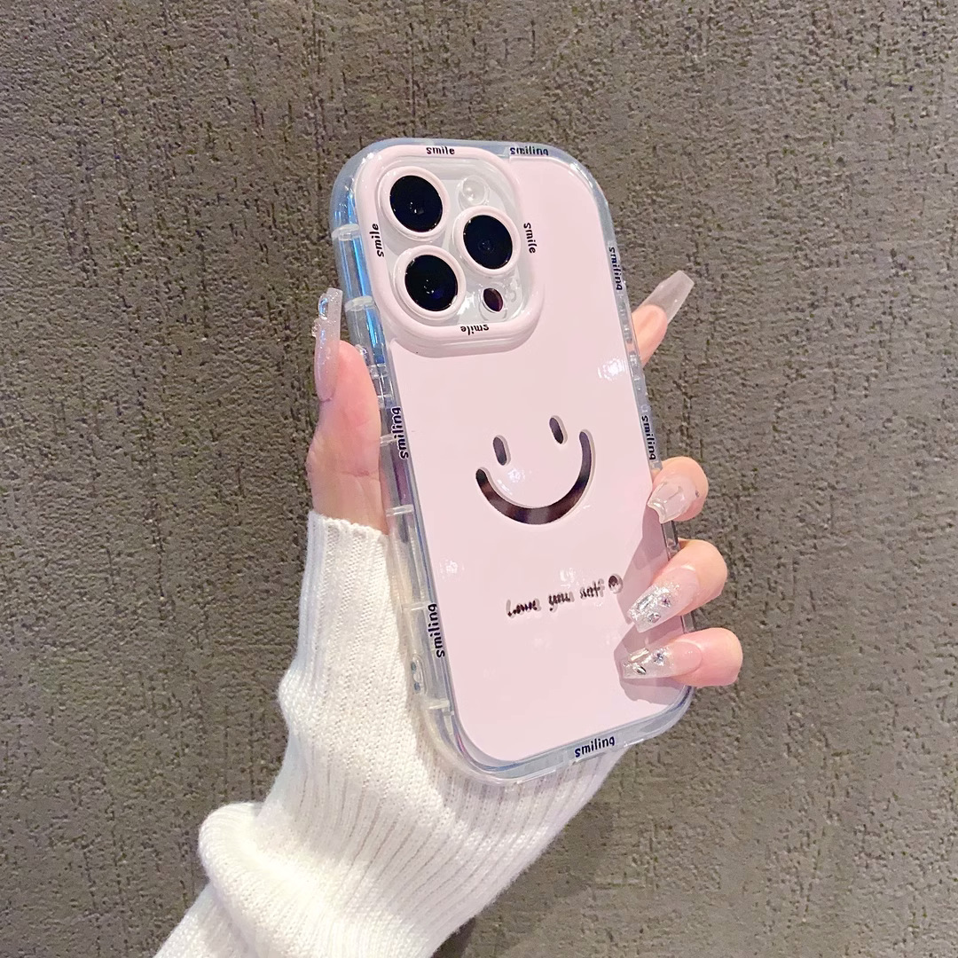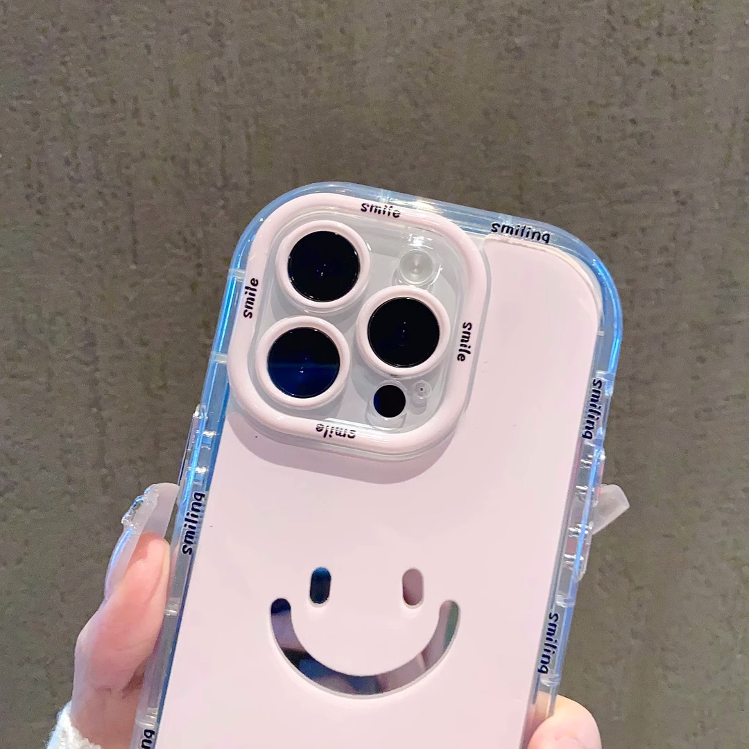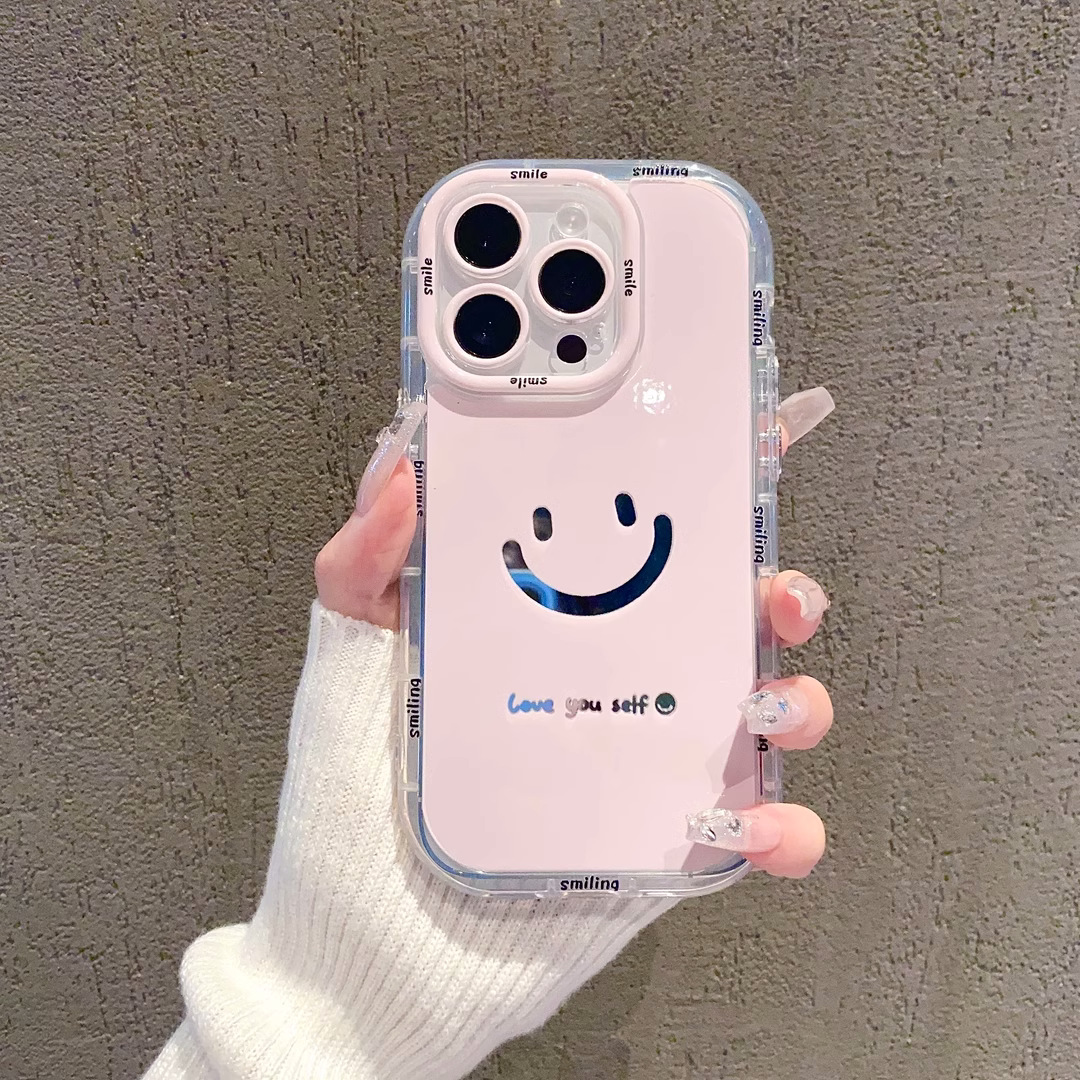 镜面奶油壳适用苹果16promax手机壳彩绘笑脸iPhone14/13防摔15/11