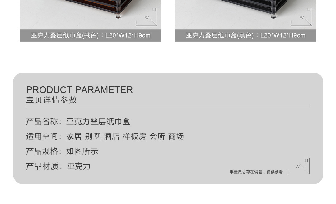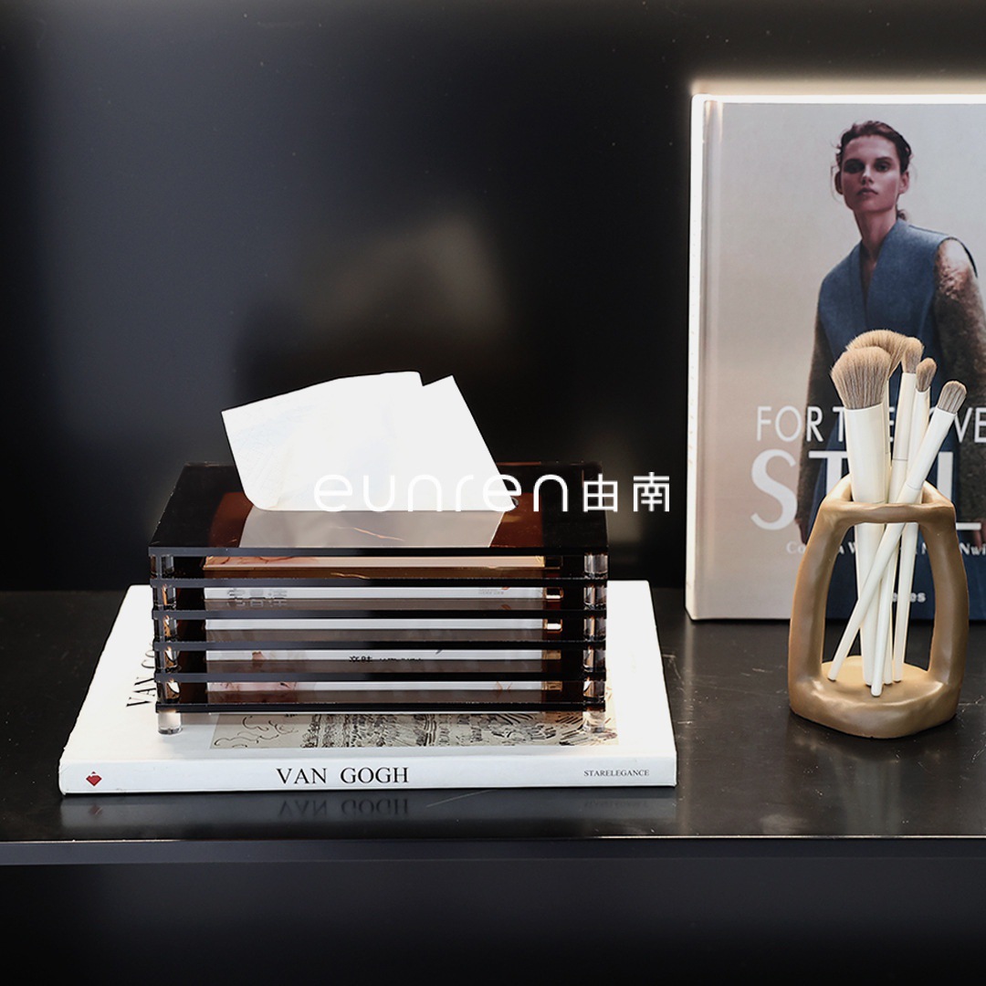 简约现代高档亚克力纸巾盒家用摆件茶几纸巾创意收纳抽纸盒软装饰