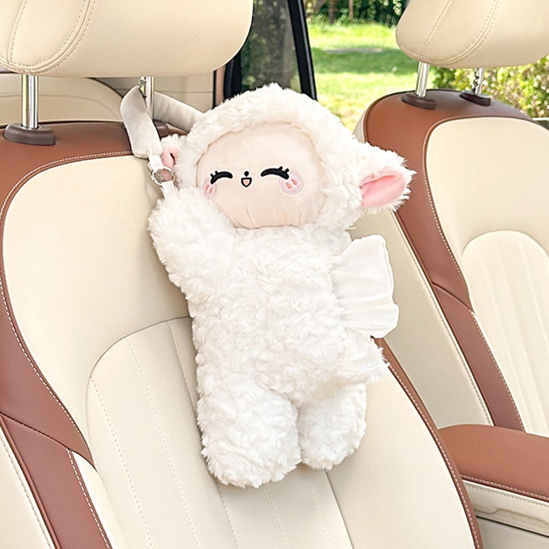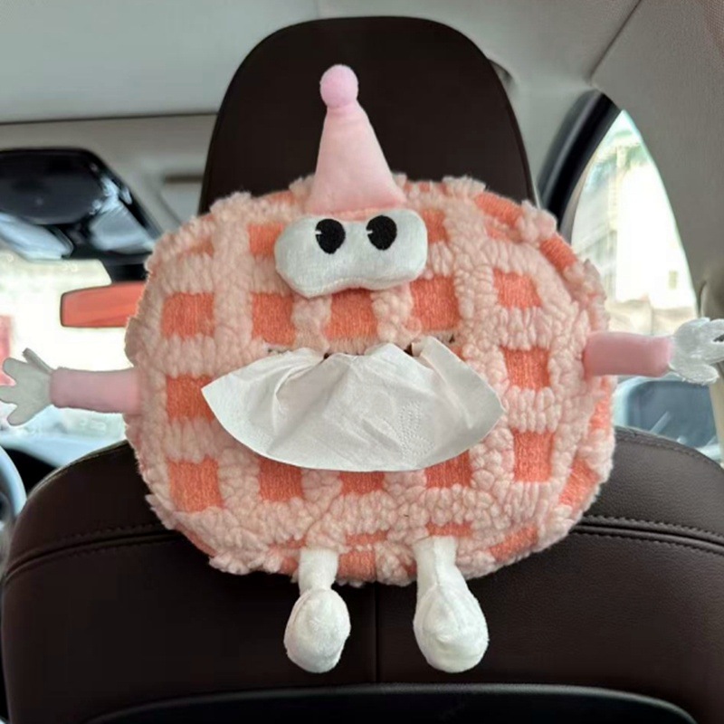 车载卡通毛绒纸巾盒创意可爱车挂式扶手箱汽车座椅背抽纸盒纸巾套