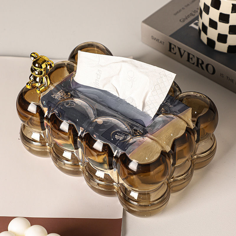 棉花糖纸巾盒【透明色+银熊+银蝴蝶结】