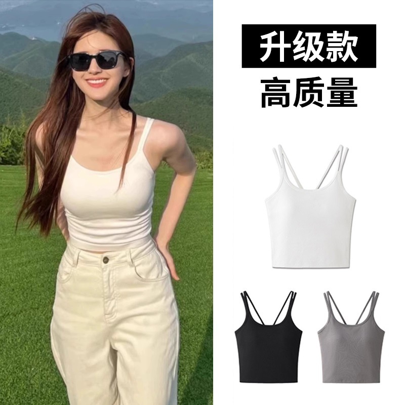 双肩带吊带背心内搭女夏带胸垫外穿打底瑜伽白色美背内衣一体上衣
