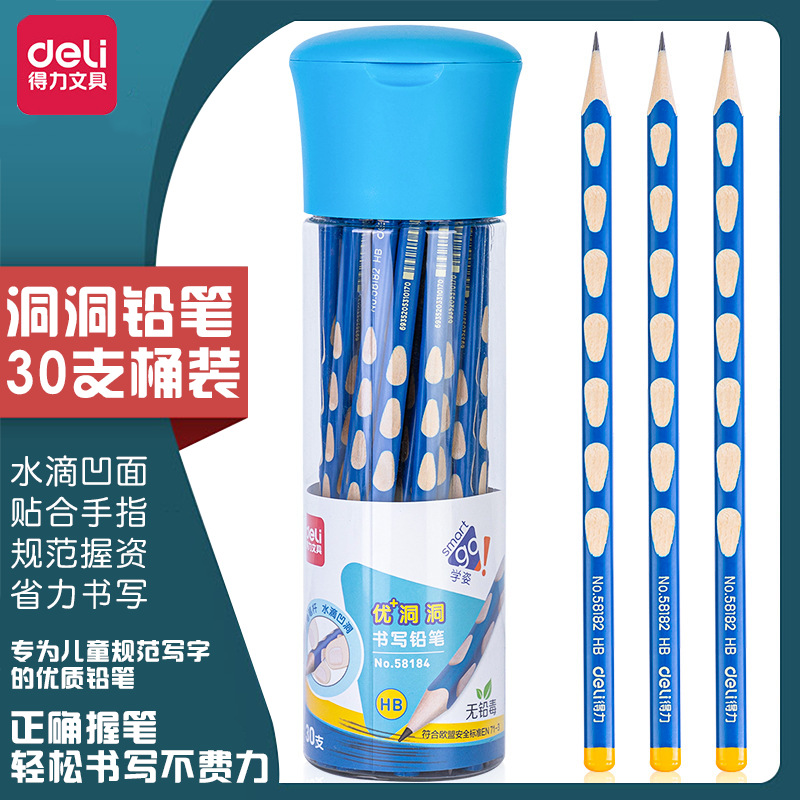 得力洞洞铅笔小学生专用2B铅笔矫正握姿HB2考试涂卡正品安全无毒