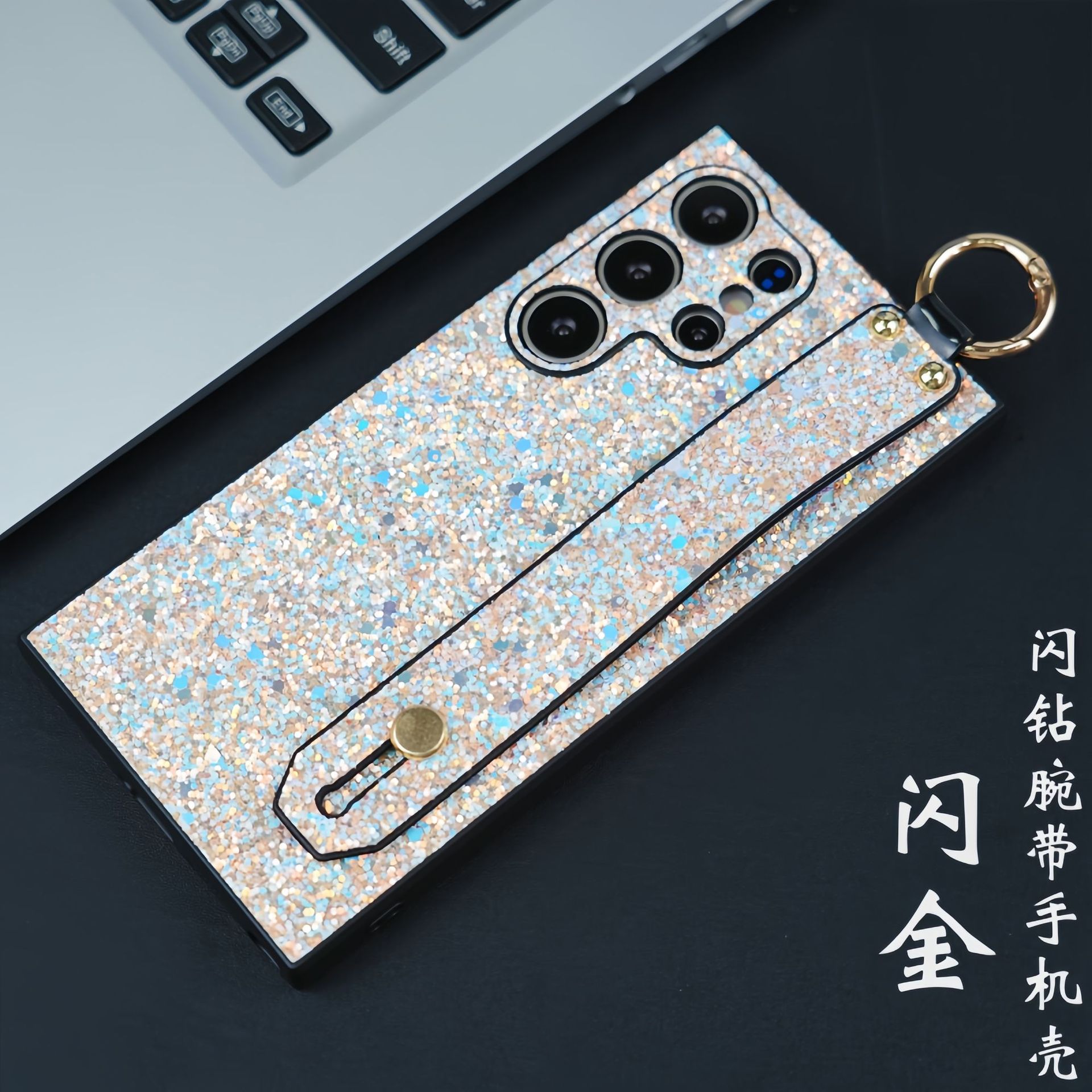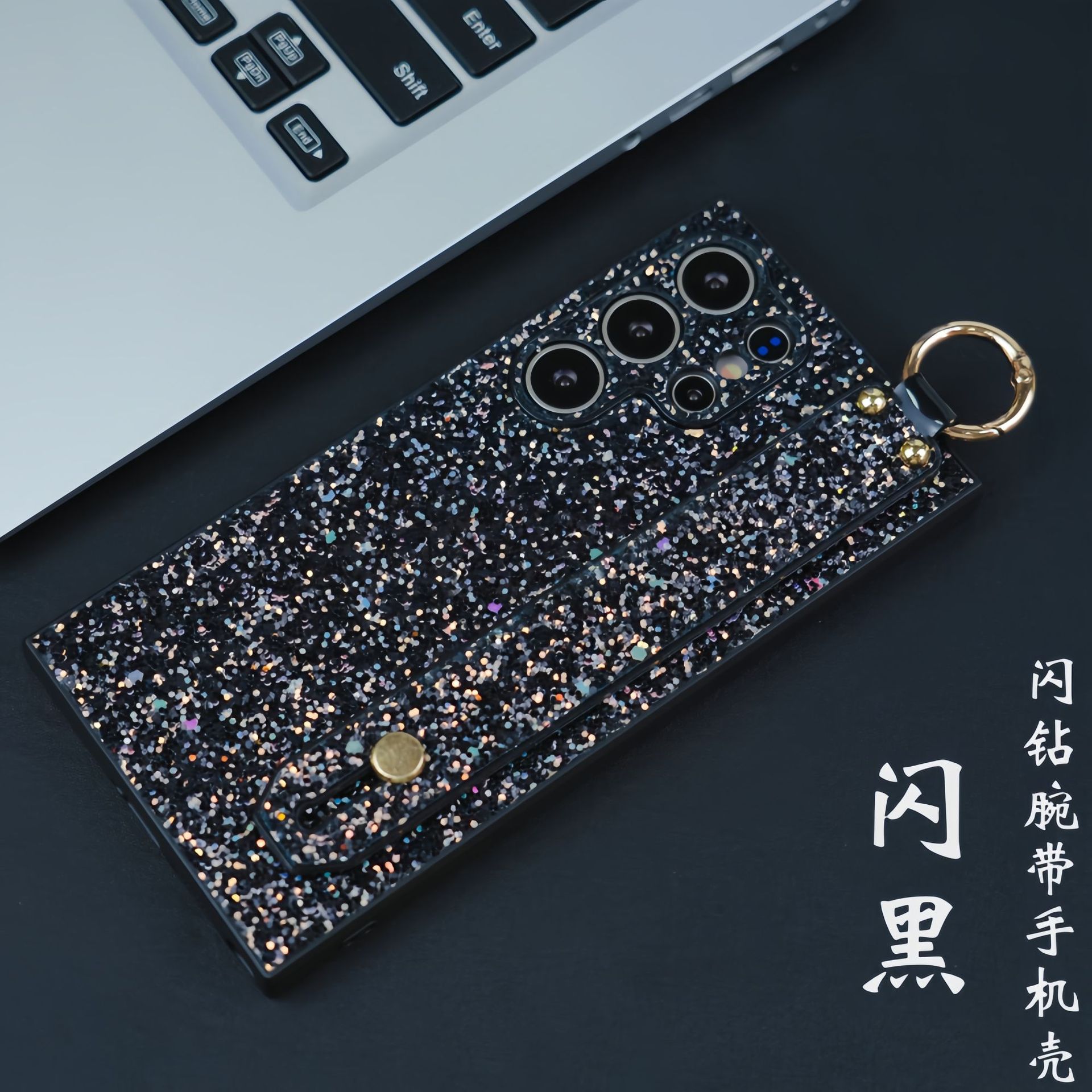 适用三星S25Ultra手机壳S24plus腕带款全包S22/S1闪钻腕带支架壳