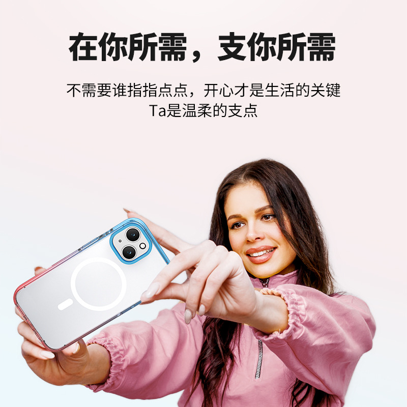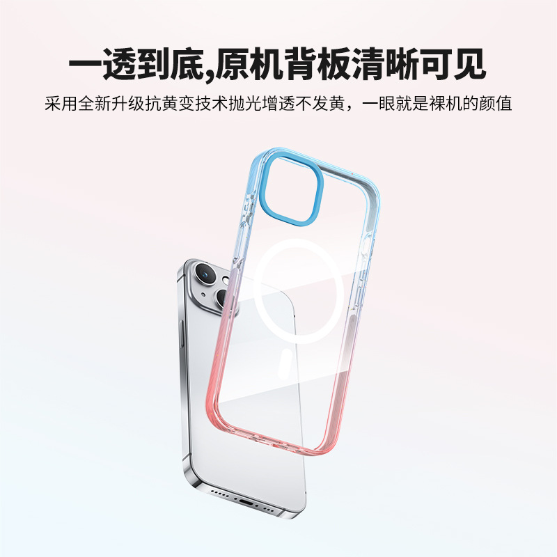 适用iPhone15P系列Magsafe磁吸手机壳透明渐变色全包手机保护套
