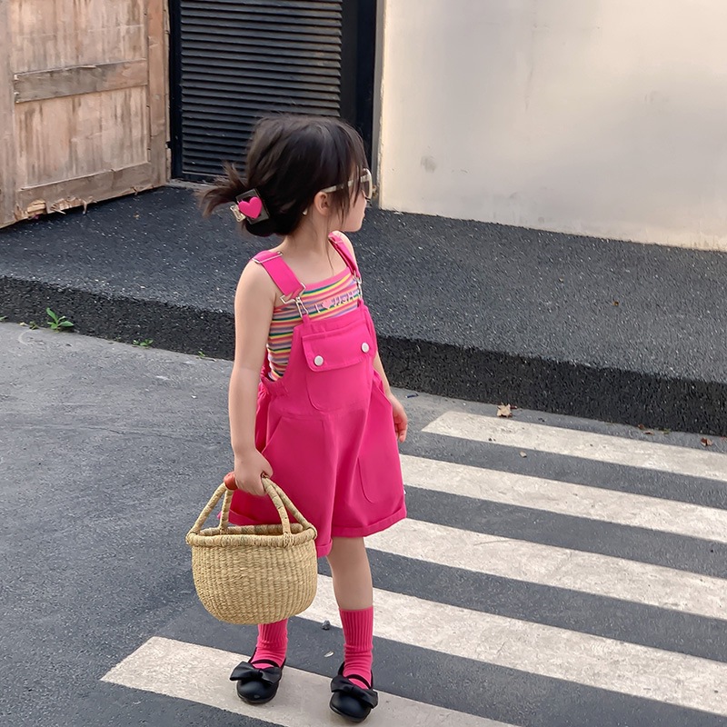 夏季女童两件套宝宝洋气儿童个性潮牌韩版花朵条纹吊带背带裤套装