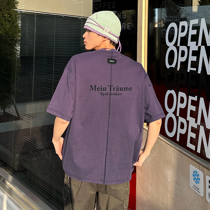 韩路男装 复古美式字母印花T恤男女夏季新款情侣高街潮牌短袖体恤