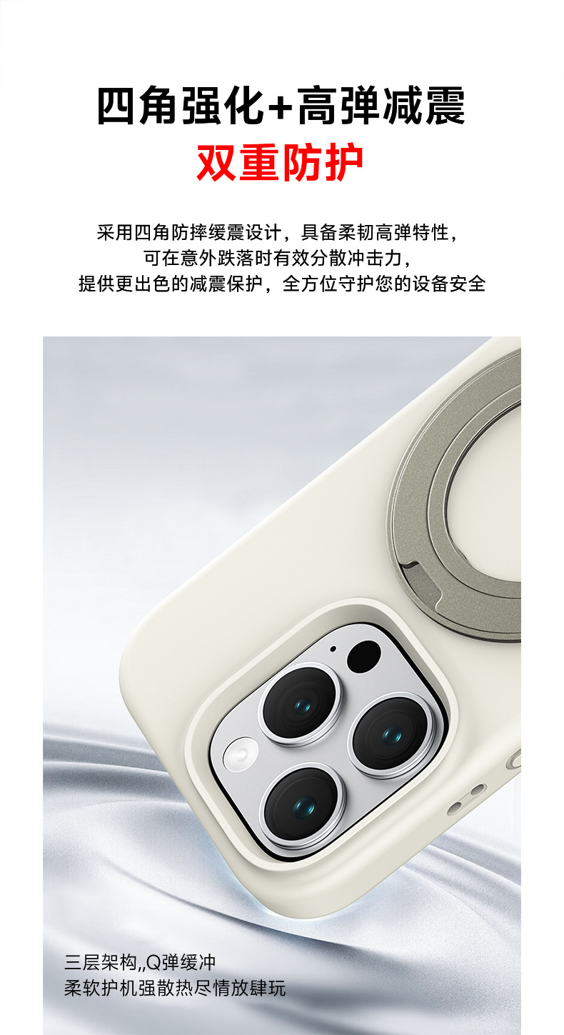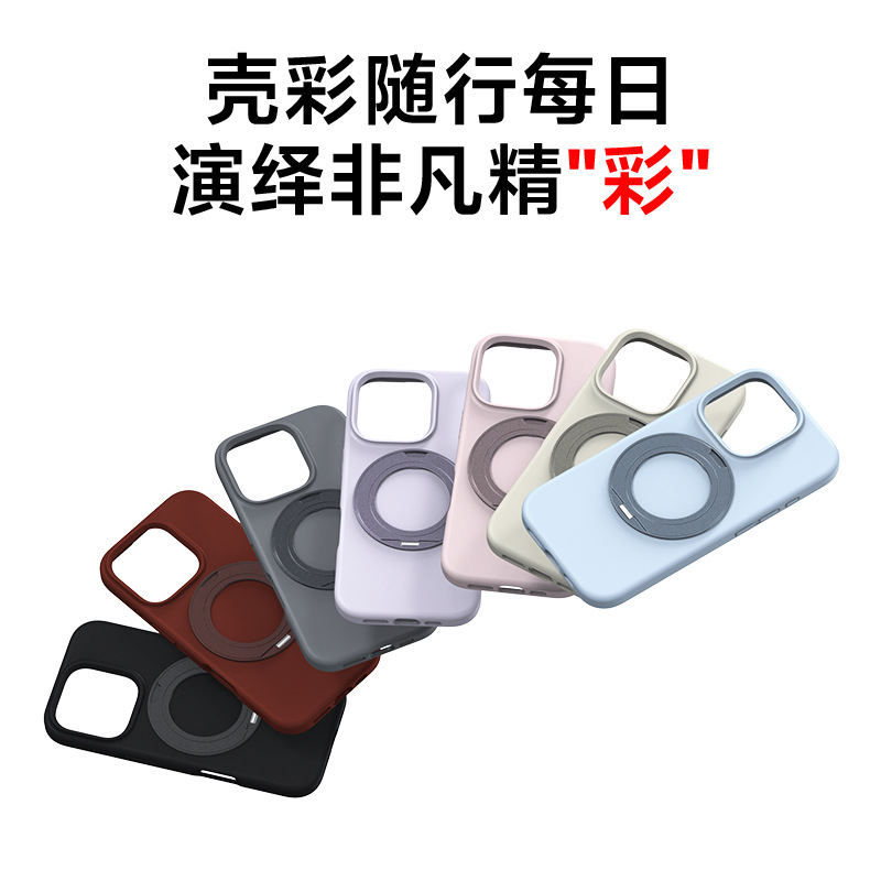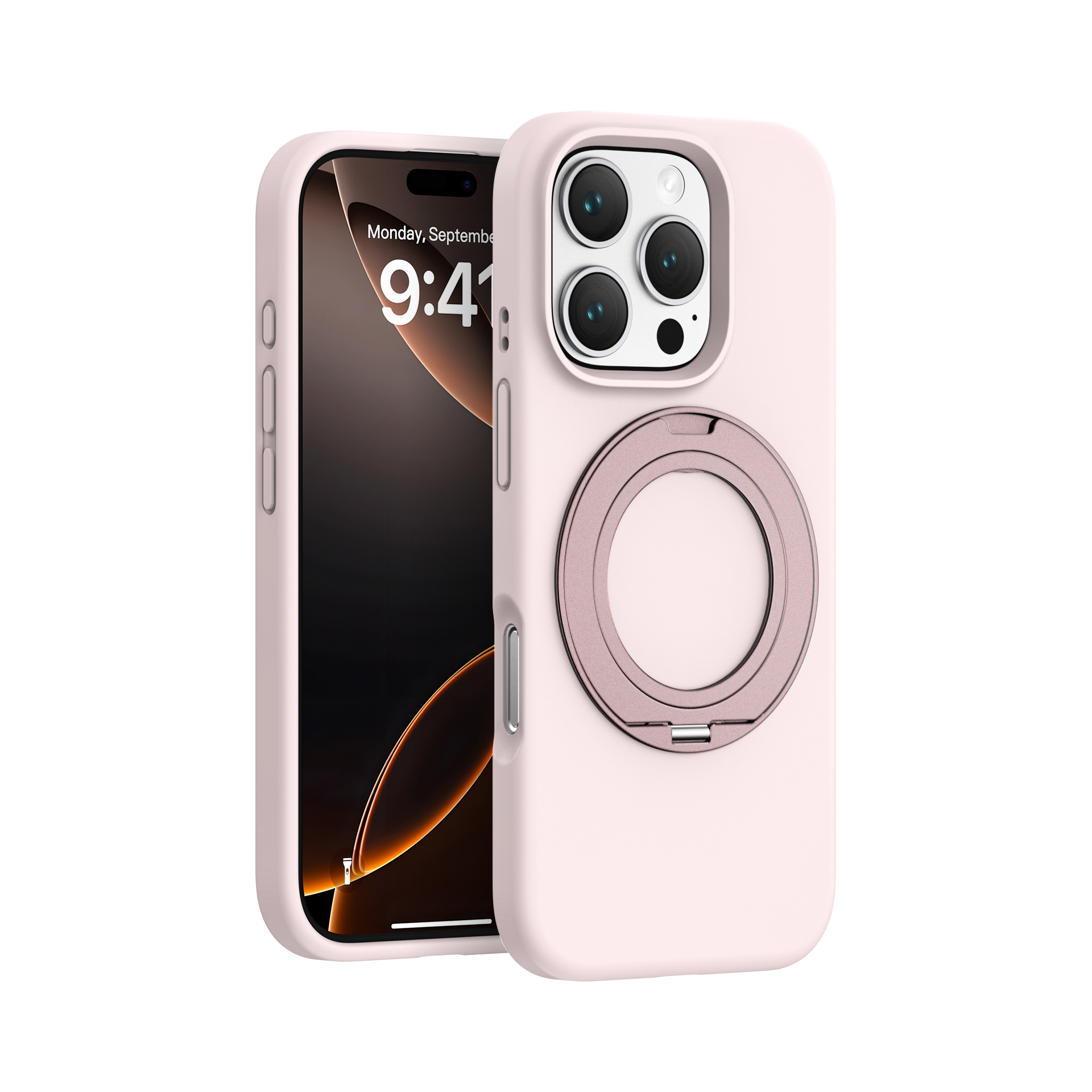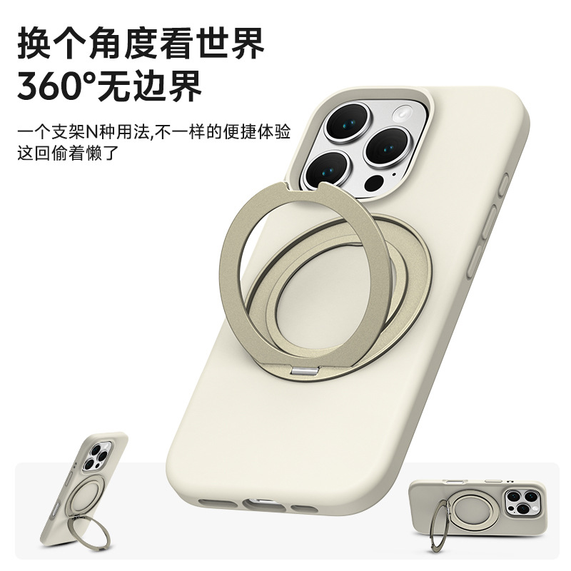 适用iPhone16ProMax液态硅胶手机壳360°旋转支架磁吸手机壳