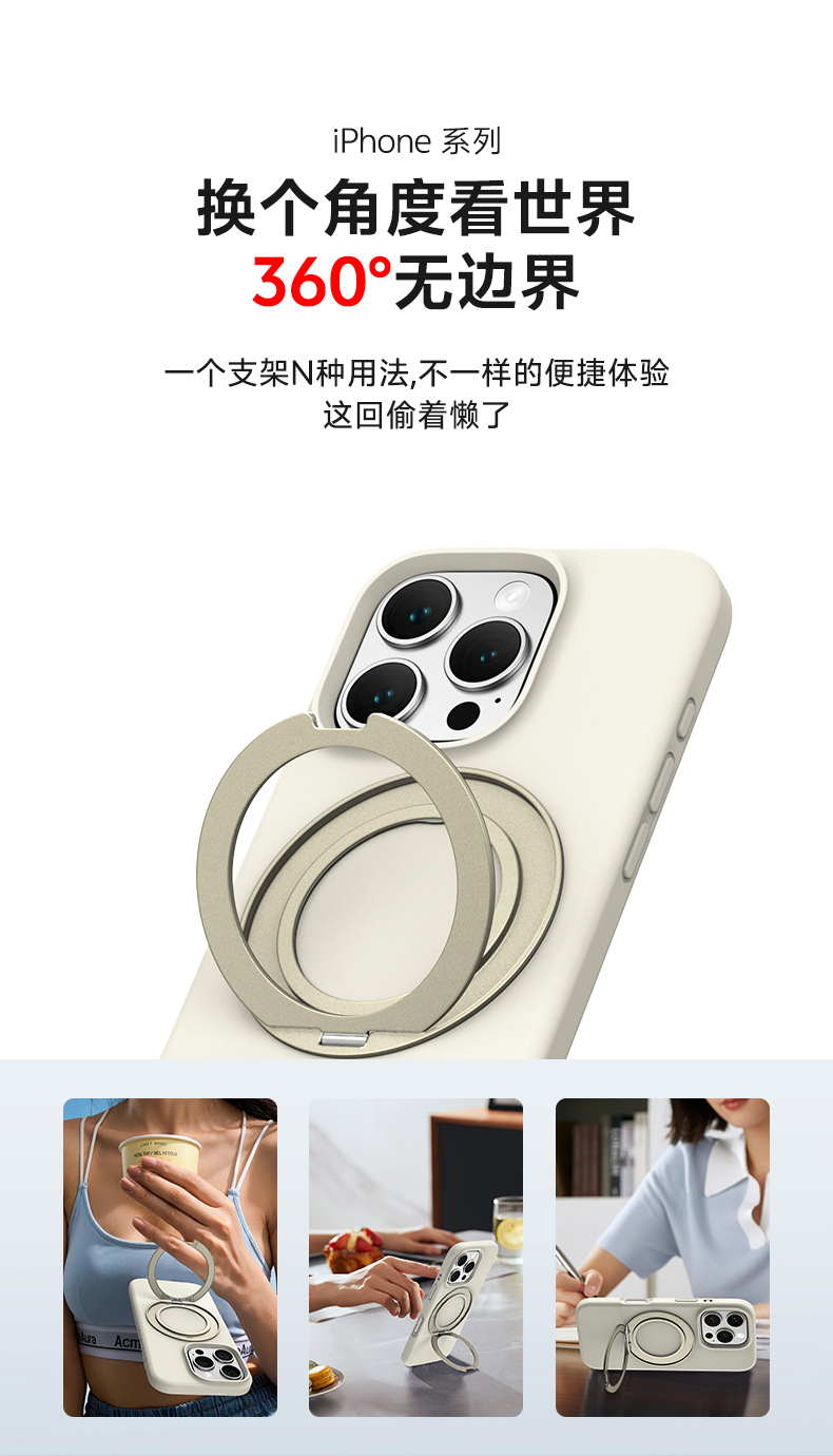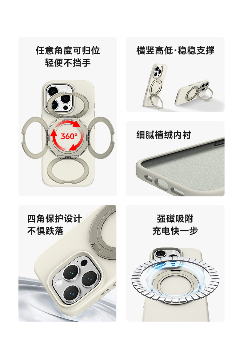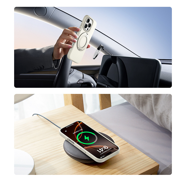 适用iPhone16ProMax液态硅胶手机壳360°旋转支架磁吸手机壳