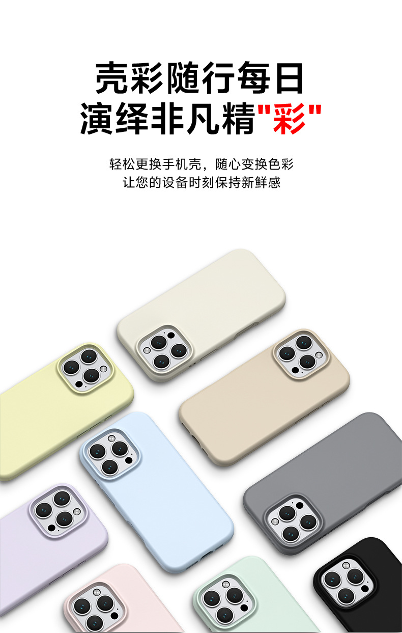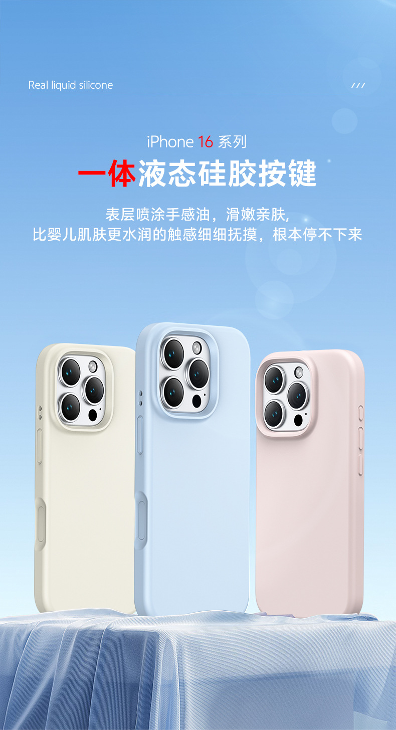 适用iPhone16Pro纯色液态硅胶手机壳一体式拍照按键手机保护套