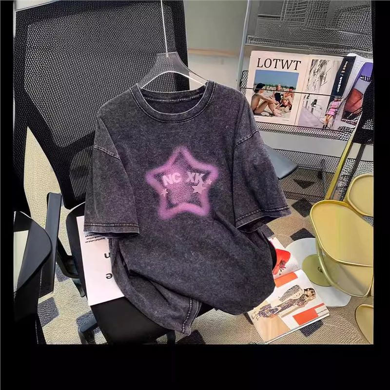美式重磅短袖t恤男女夏季复古水洗做旧宽松胖mm潮牌情侣半袖体恤