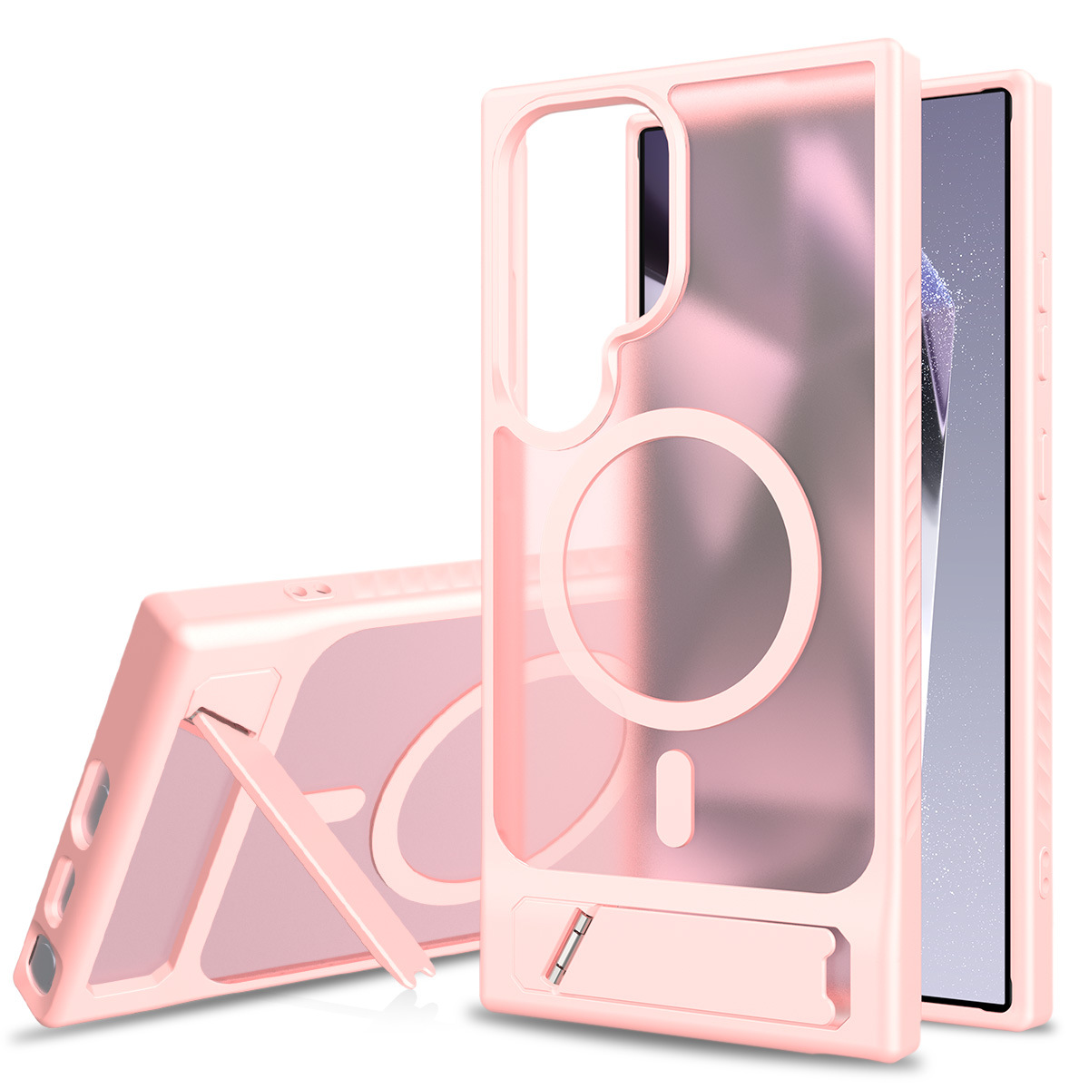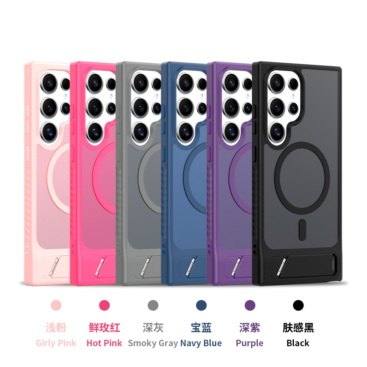 跨境适用三星S24Ultra磁吸支架手机壳s25edge肤感磨砂二合一套