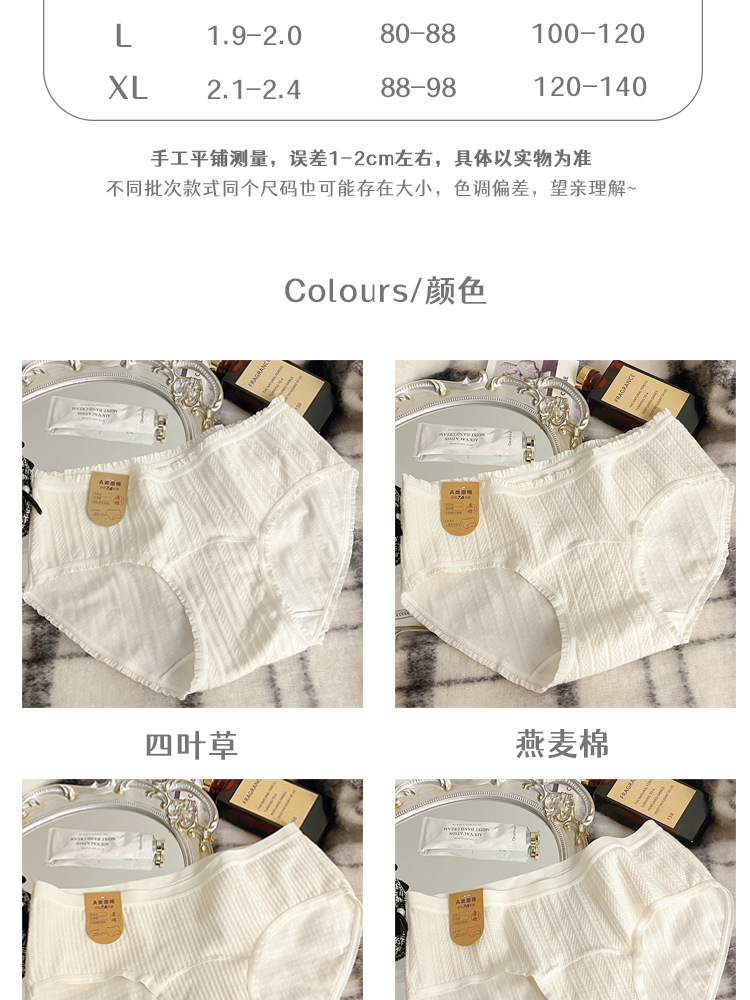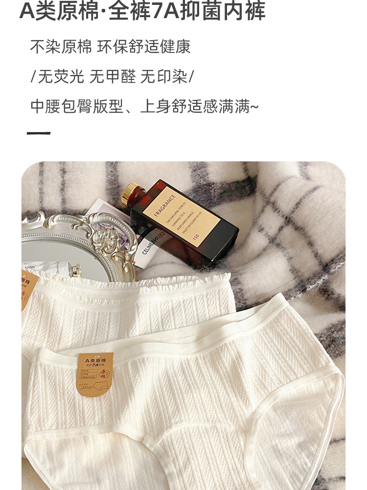 A类婴儿棉纯棉内裤女士加长档16cm7A抑菌全棉裆少女生白色三角裤