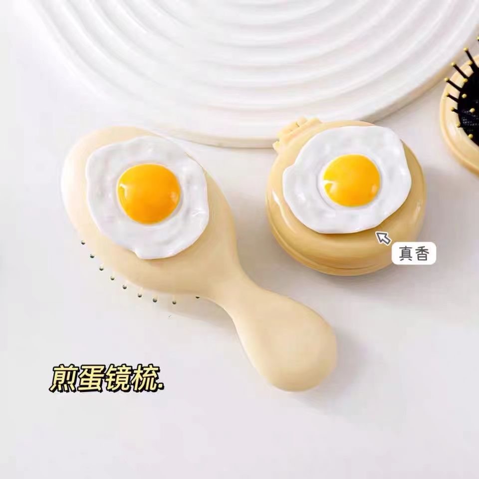 卡通可爱荷包蛋气囊梳子奶呼呼气垫镜梳软妹便携按摩梳迷你小梳子