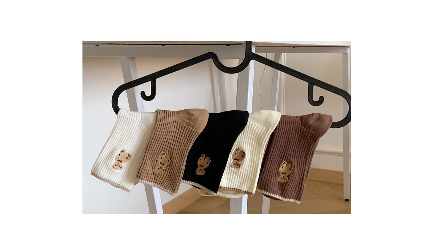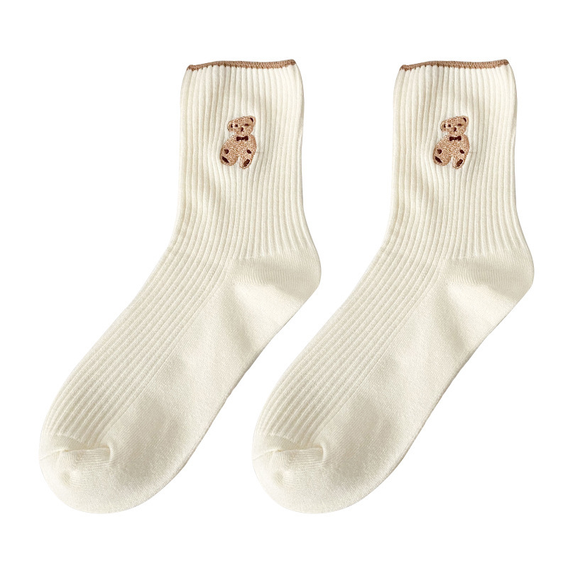 小熊袜子女韩版中筒棉袜可爱日系堆堆袜学生百搭秋冬季泰迪熊长袜