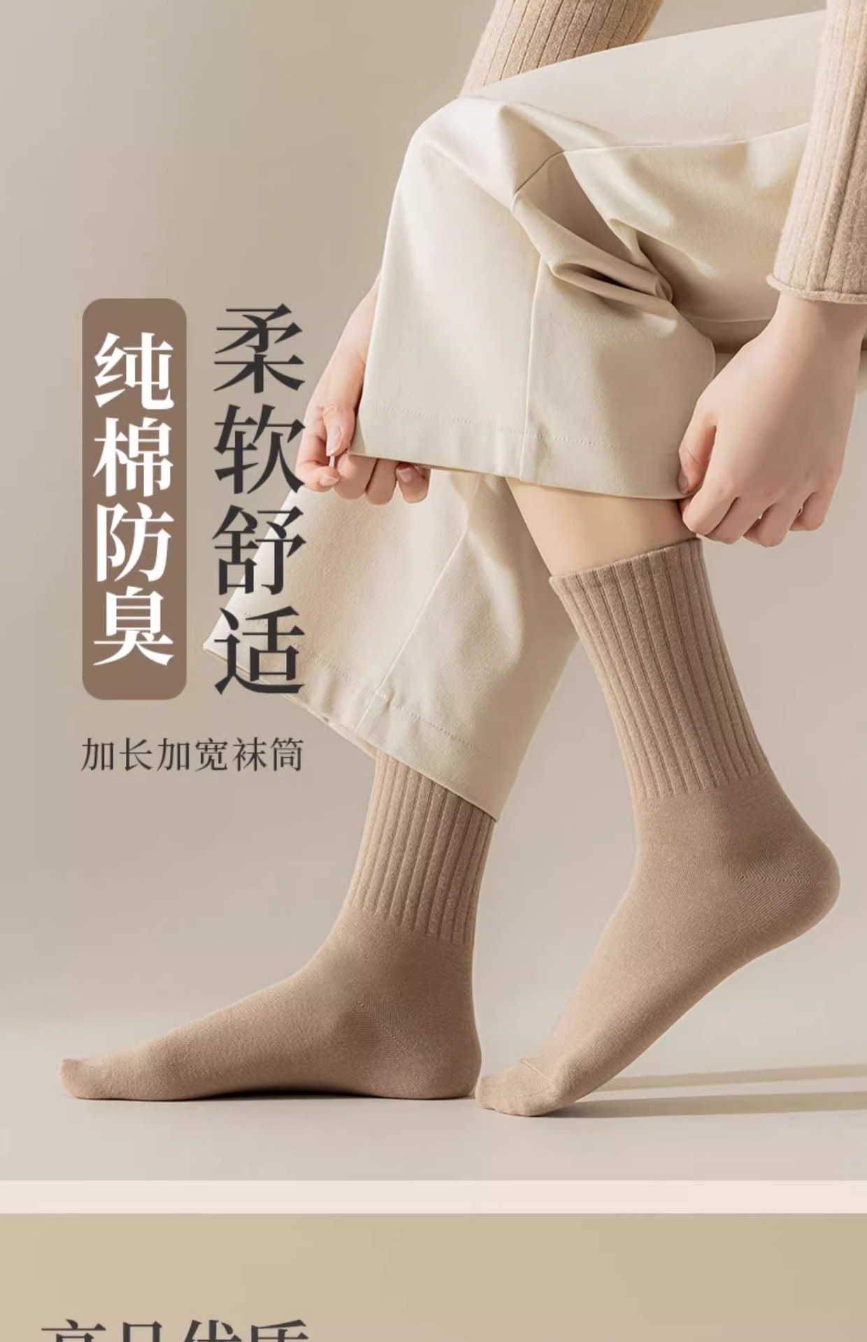 纯棉袜子女夏薄款中筒袜吸汗防臭全棉无骨女袜