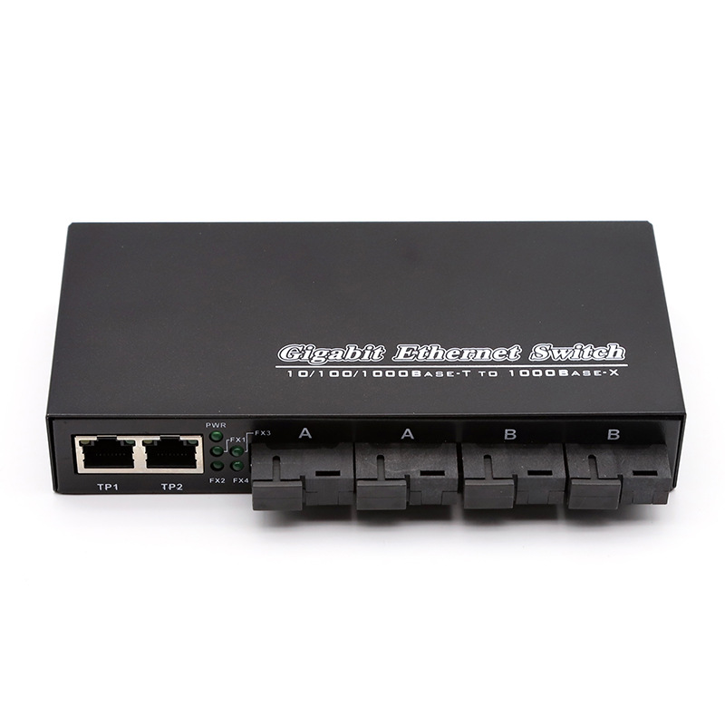 千兆4光2电光纤收发器光电转换器汇聚级联SC接口光纤交换机一台