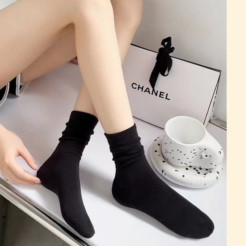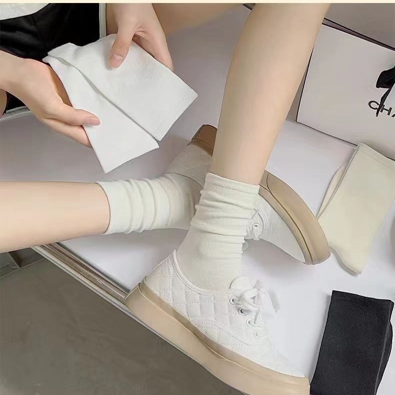 春夏季白色堆堆袜子女中筒薄款防臭袜潮无骨袜月子长袜