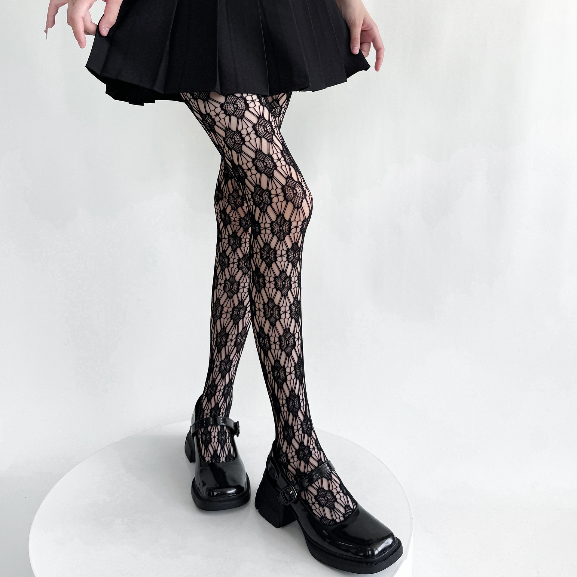 夏季新款性感蕾丝花卉镂空渔网连裤袜提花网眼千禧辣妹纯色丝袜潮