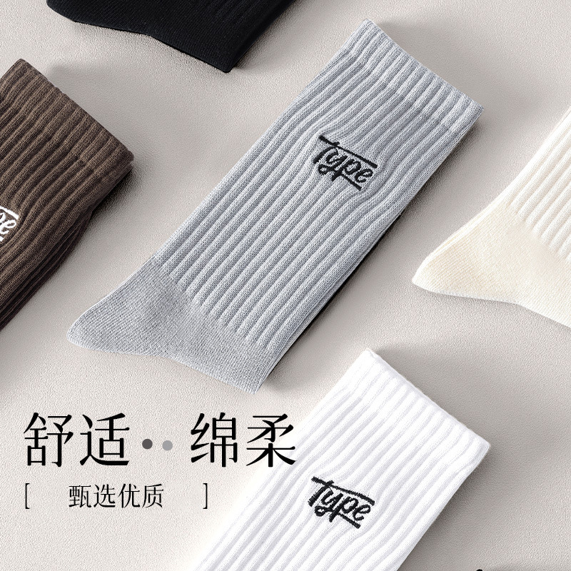 袜子男士中筒袜秋冬款字母运动篮球韩版潮袜吸汗透气防臭春秋长袜